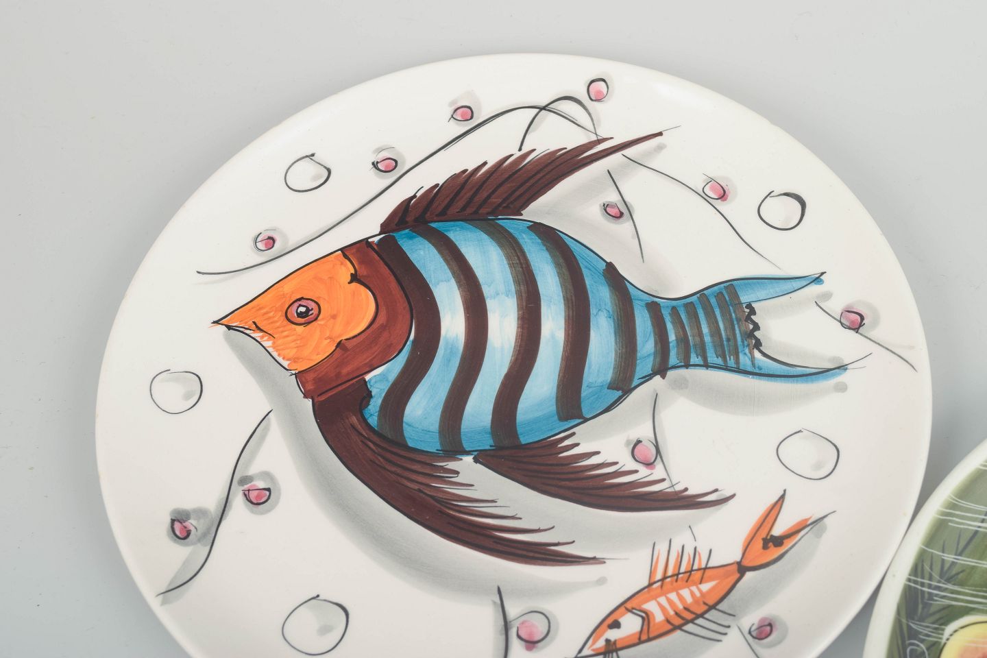Set of five hand-decorated faience plates with colourful motifs and classic Italian design. Some small chips.
