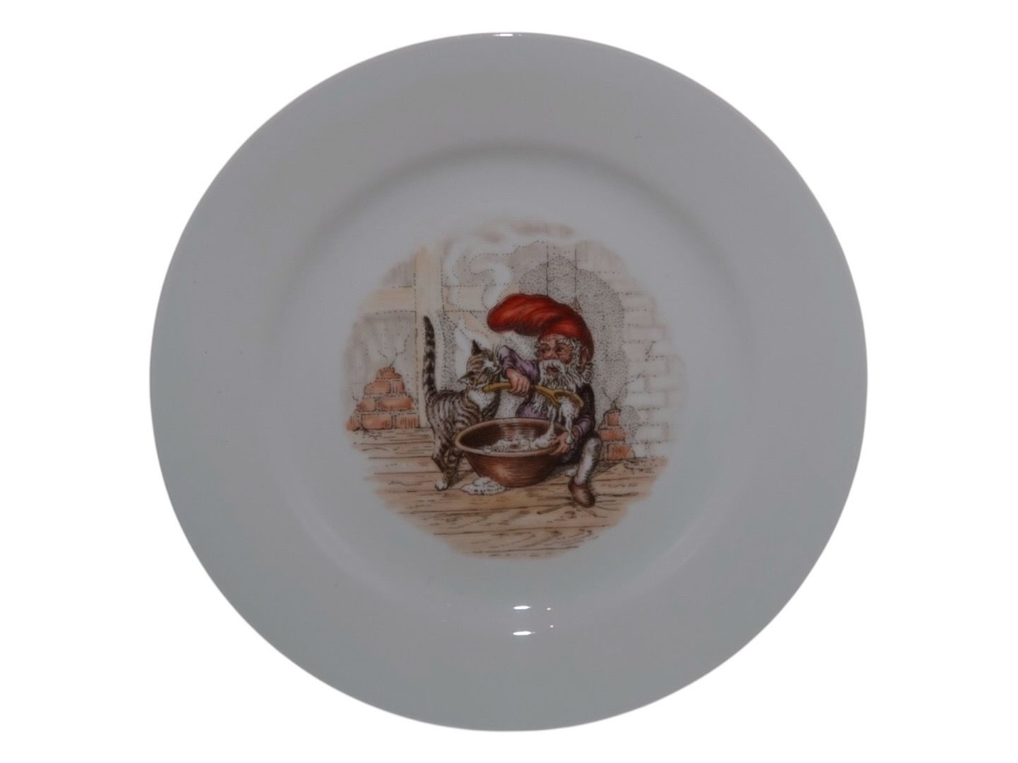 Kagetallerken med julenisse og kat 17,2 cm.