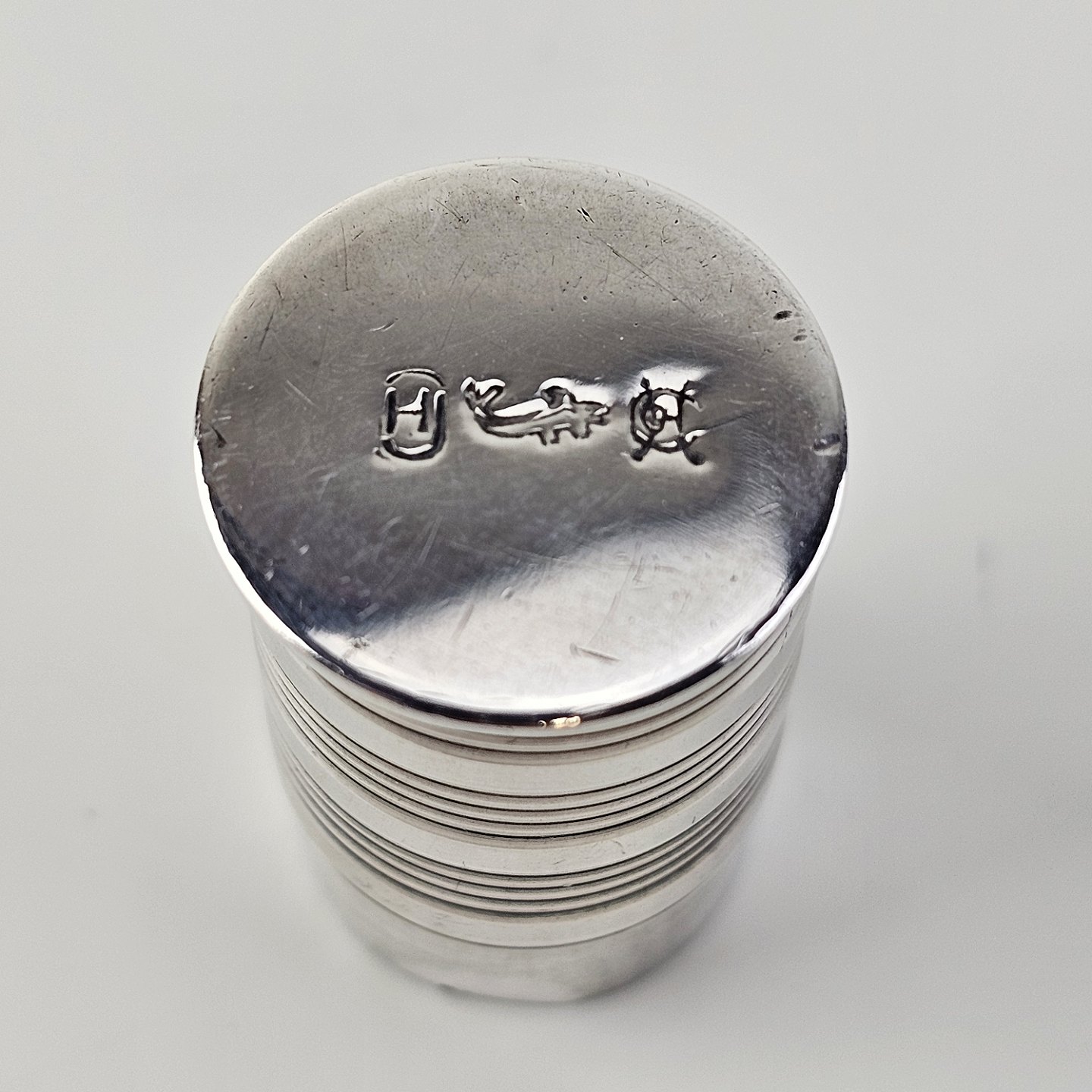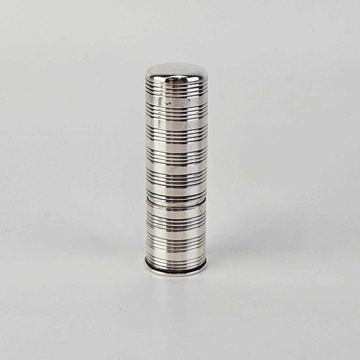 Læbestiftholder i pletsølv med stempler på toppen