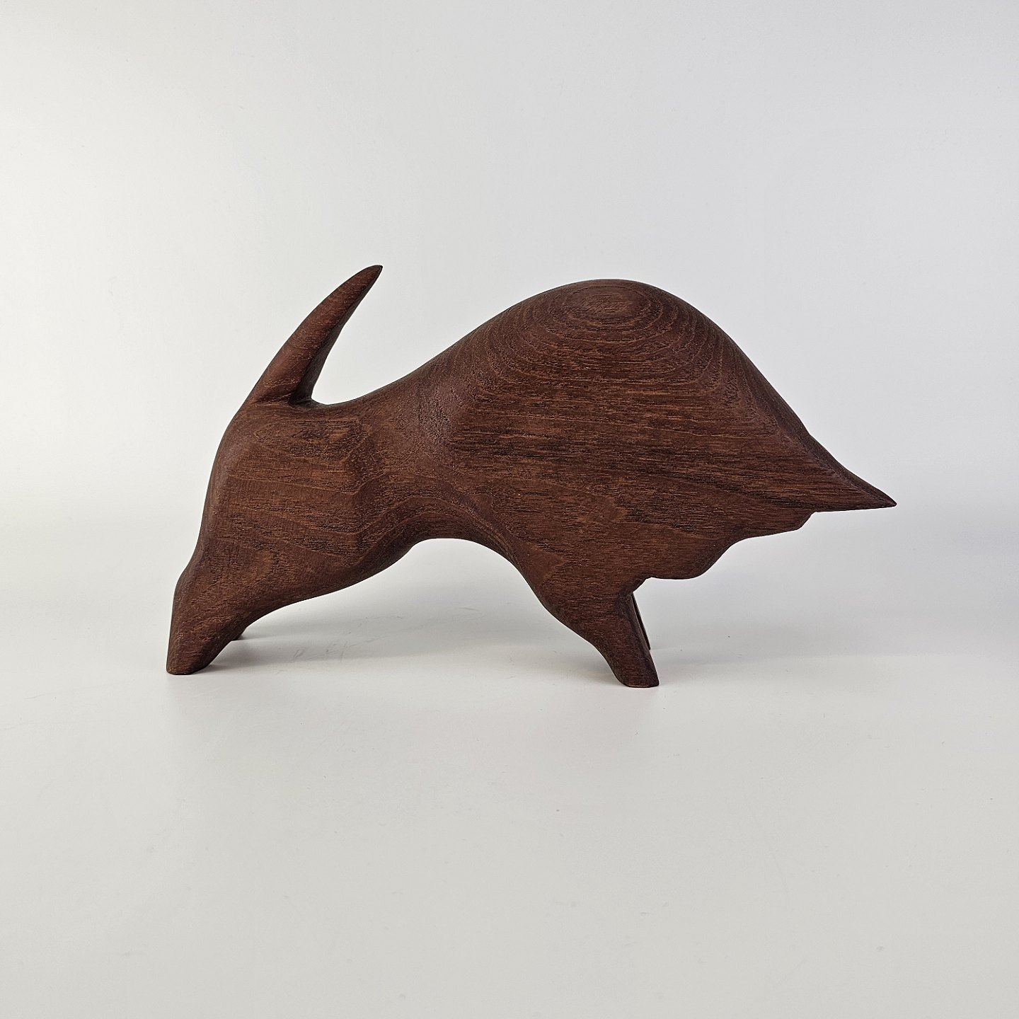 Figur i teak træ med motiv af en tyr