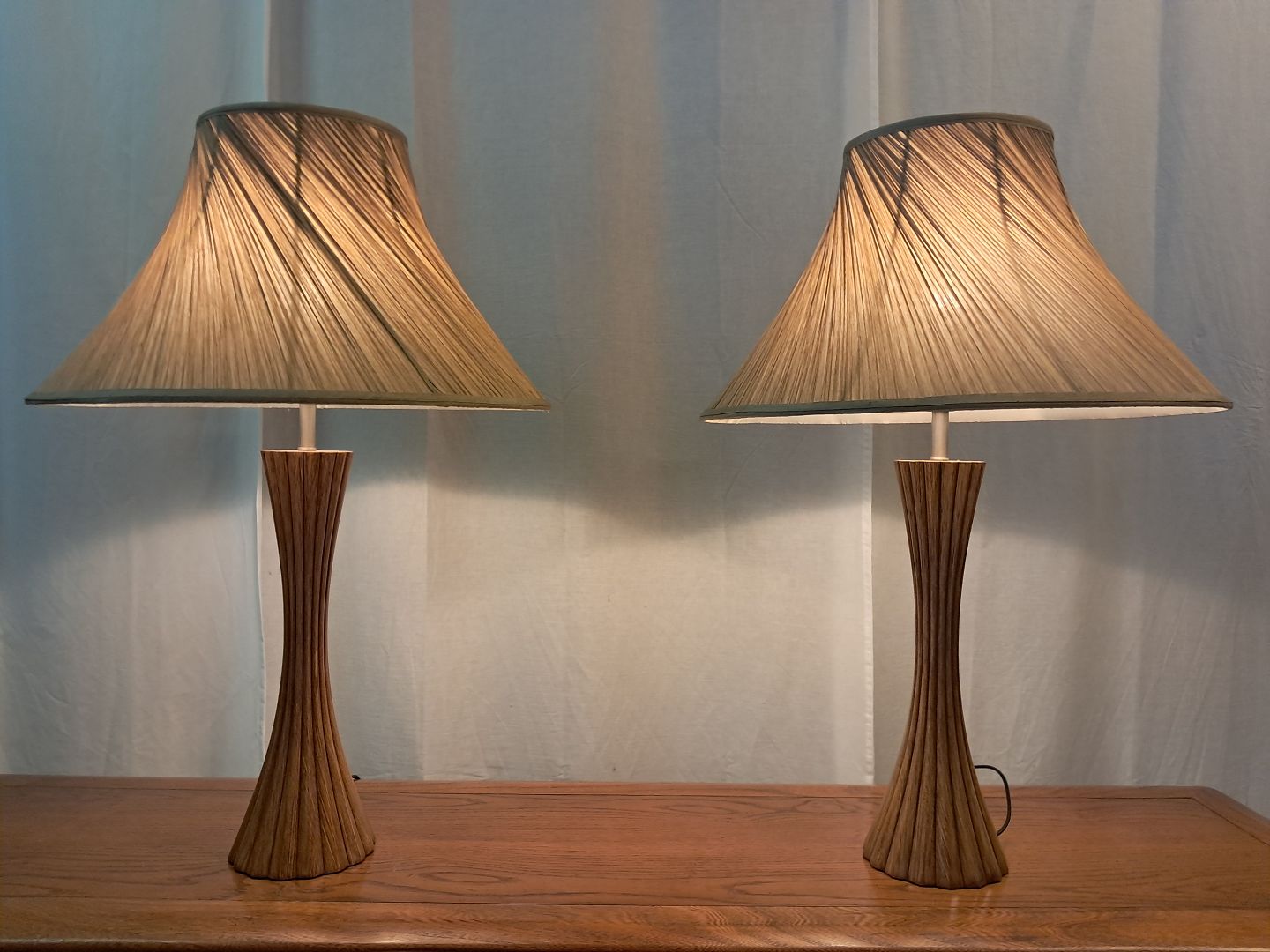 2 Lysberg Hansen og Therp bordlamper i pocelæn med skærme, fra 0erne.