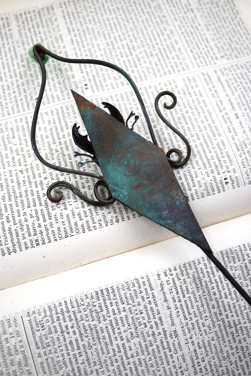 Unika blomsterpind i kobber med glas perle og insekt lavet af smykke kunstneren Torben Hardenberg...