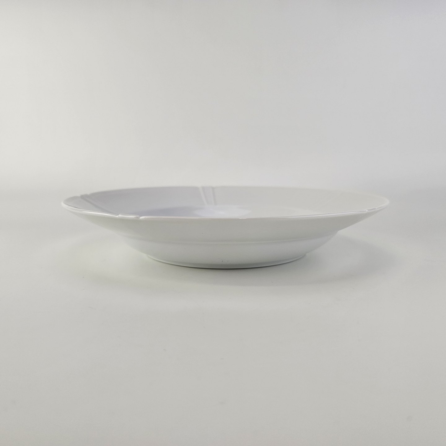 Lille dyb tallerken i hvidt porcelæn fra stellet Rosenborg