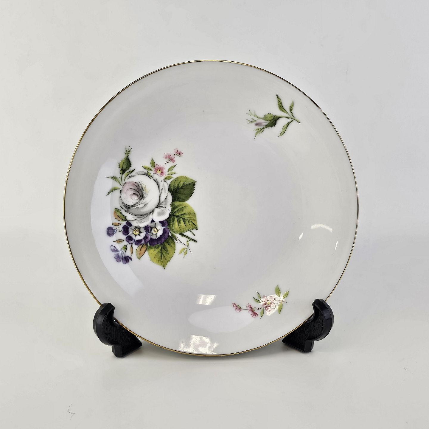 Paris er porcelæn med guldkant og motiv af hvide roser og violer