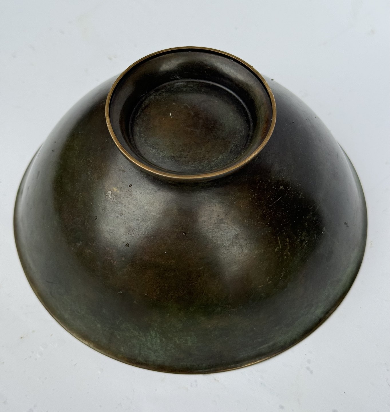 Just Andersen Let Bronze (LB). bronzepatineret skål på fod. Fremstillet på fabrikken omkring 1940. I god stand med få brugsspor. Fabriksmærket på bunden med det velkendte logo samt modelnummer LB 1337. Mål: H. 6 cm