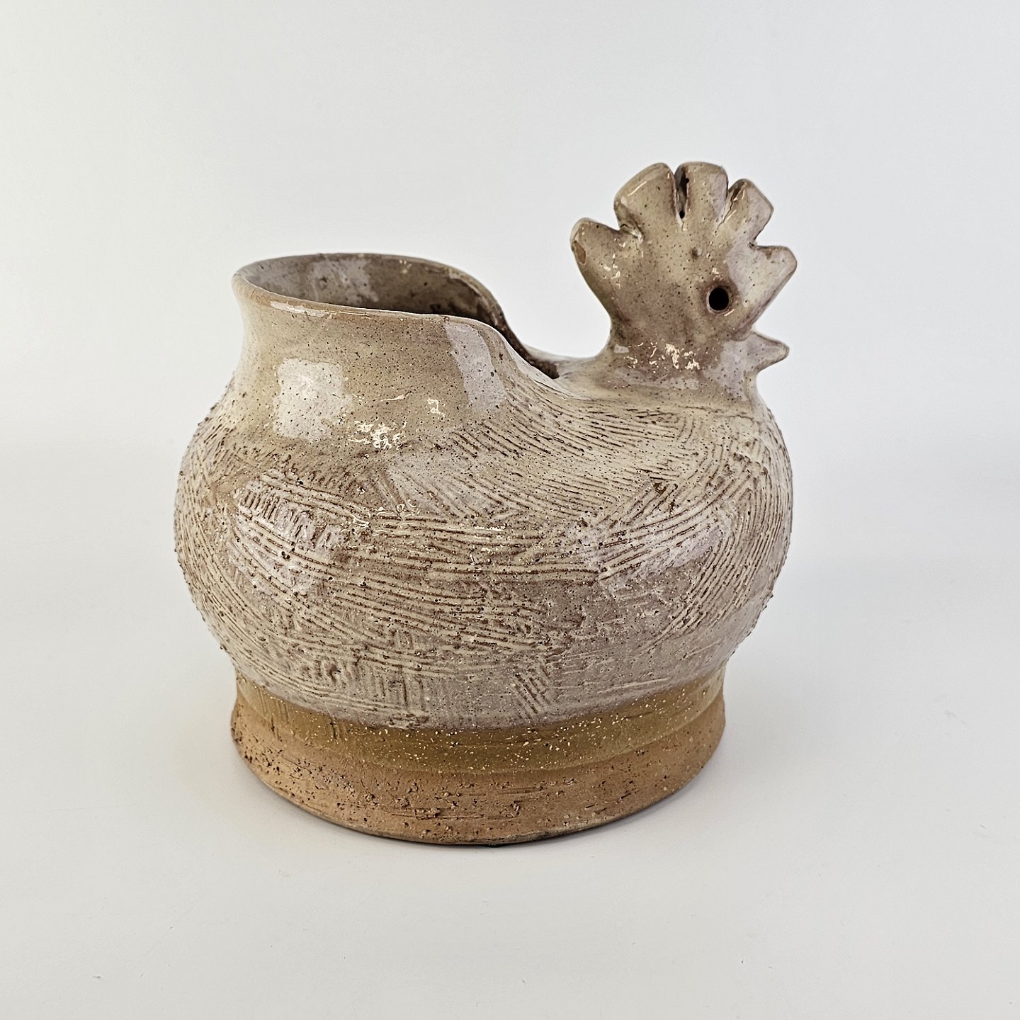 Krukke med form som en høne i brunlig glaseret keramik