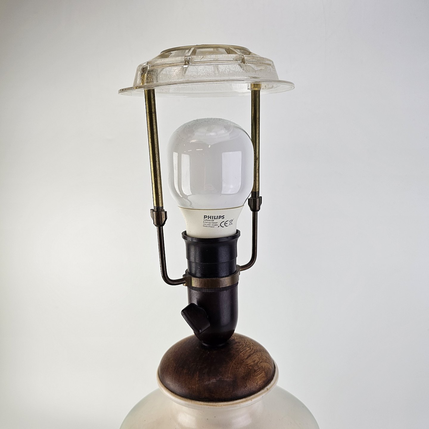 Bordlampe i hvid keramik med dekoration i blå og sort fatning