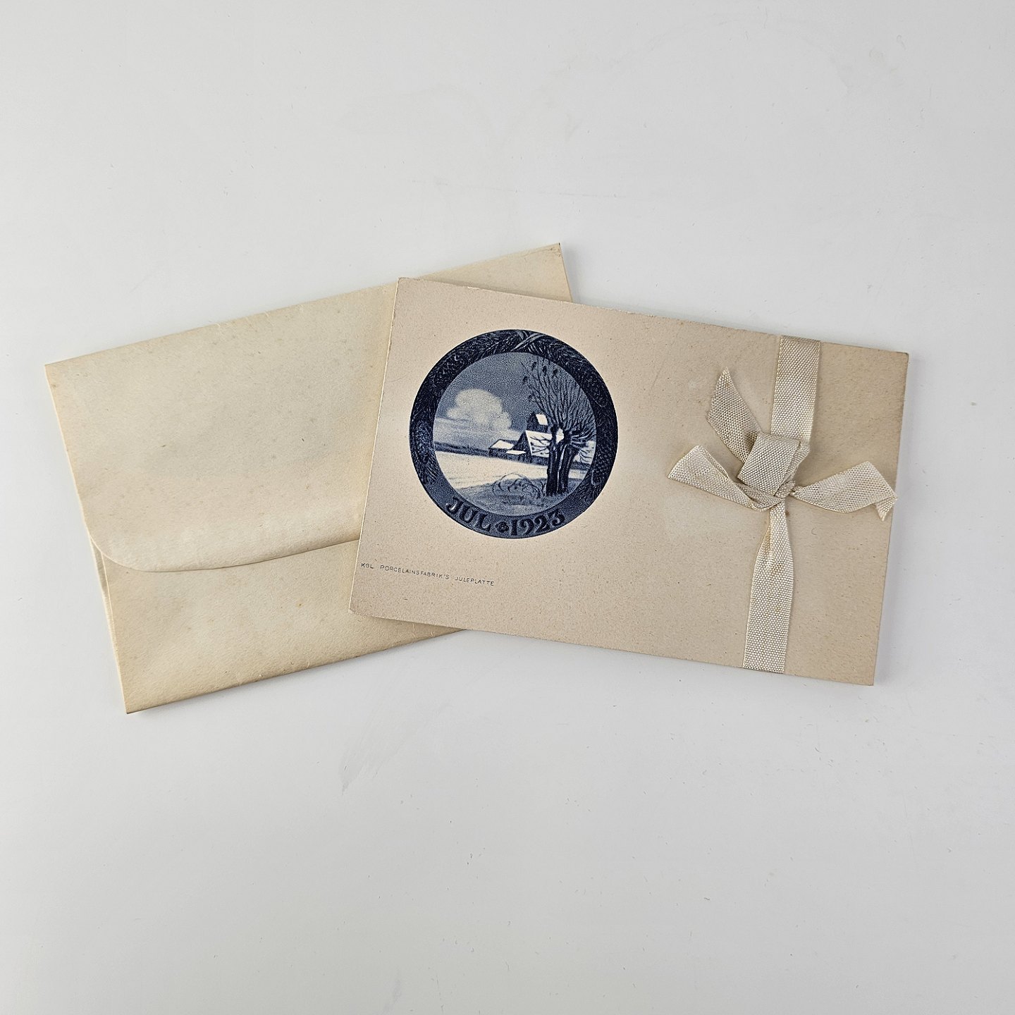 Brevkort med motiv af juleplatte fra 1923 fra Bing & Grøndahl og Royal Copenhagen. 10 kort og 10 kuverter