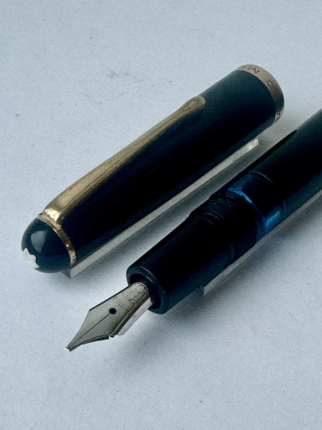 Sort Montblanc no. 342 med piston blækpåfylder. Pennen er blevet testet og den er klar til at blive brugt. Fremstillet i Tyskland i 1950’erne. Ingen skader eller reparationer. Alle dele på denne fyldepen er originale Montblanc dele tilhørende denne model. Længde: 12,7 cm