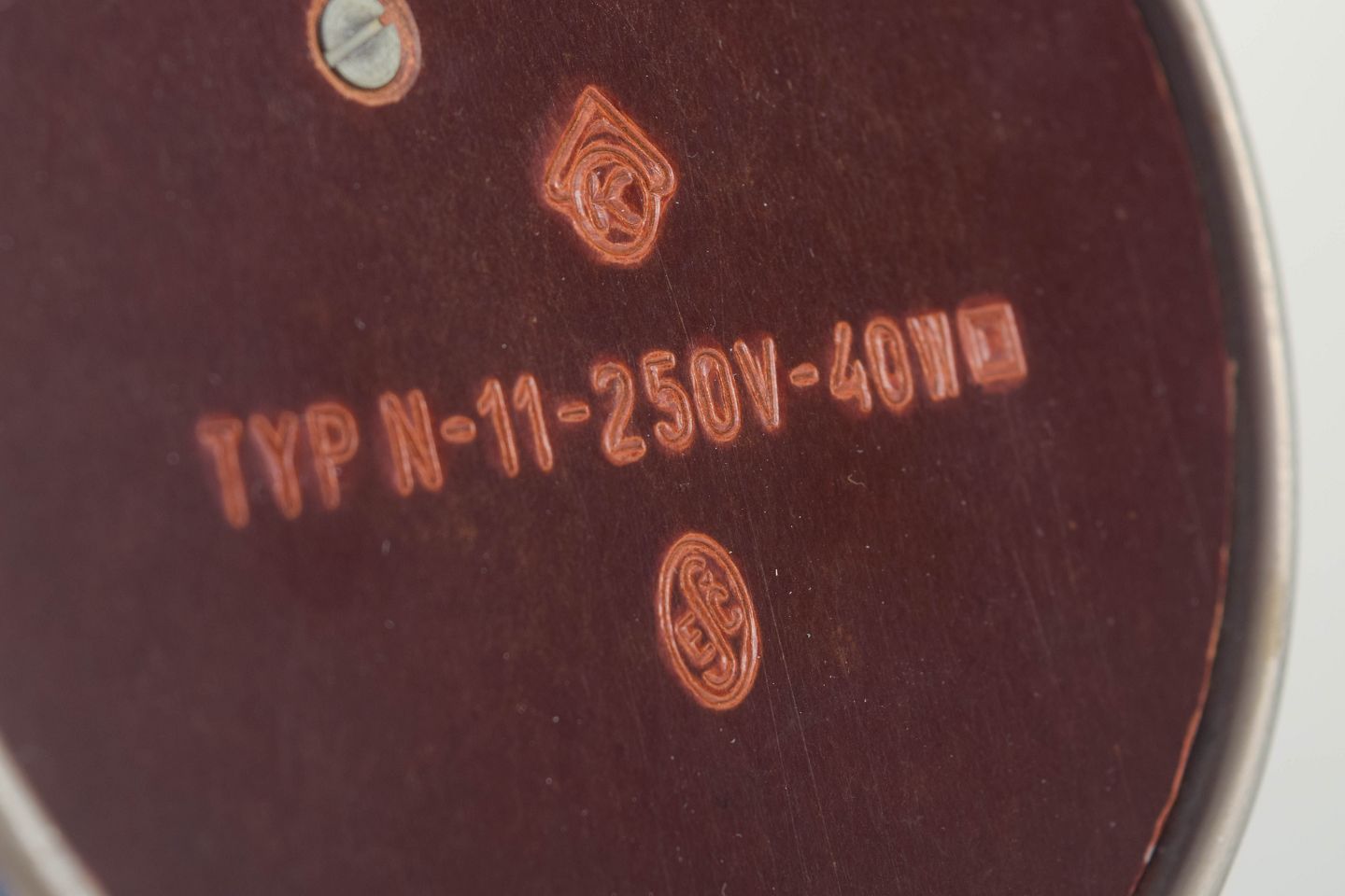 Tidlig modernistisk bordlampe i børstet stål med svampeformet skærm og konisk fod. Et karakteristisk eksempel på tjekkisk funktionalistisk belysningsdesign fra mellemkrigstiden, hvor rene linjer og industrielle materialer dominerede.