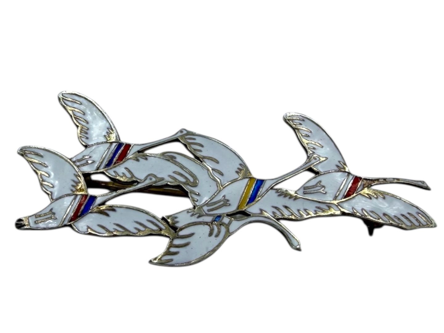 Erik Magnussen forgyldt sterlingsølv og emalje, broche med fem nordiske svaner.