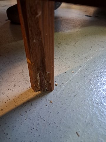 Det har brugsspor og en defekt på det ene ben.