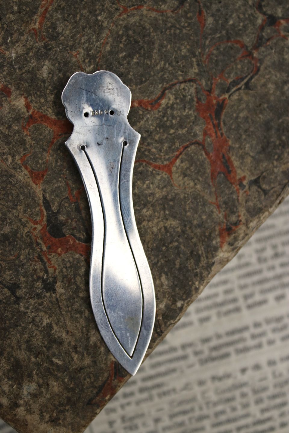 Gammelt bogmærke i sølv , stemplet 830s med blomstermotiv.
