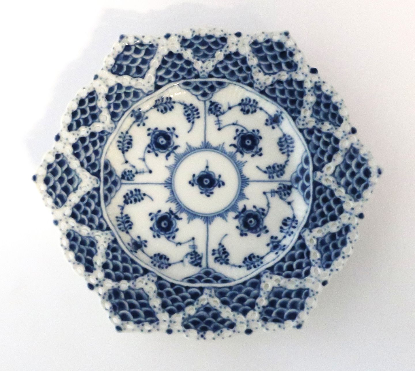 Royal Copenhagen. Musselmalet, helblonde. Kagetallerken med gennemskåret bort. Model 1144. Diameter 17,5 cm. (1 sortering)