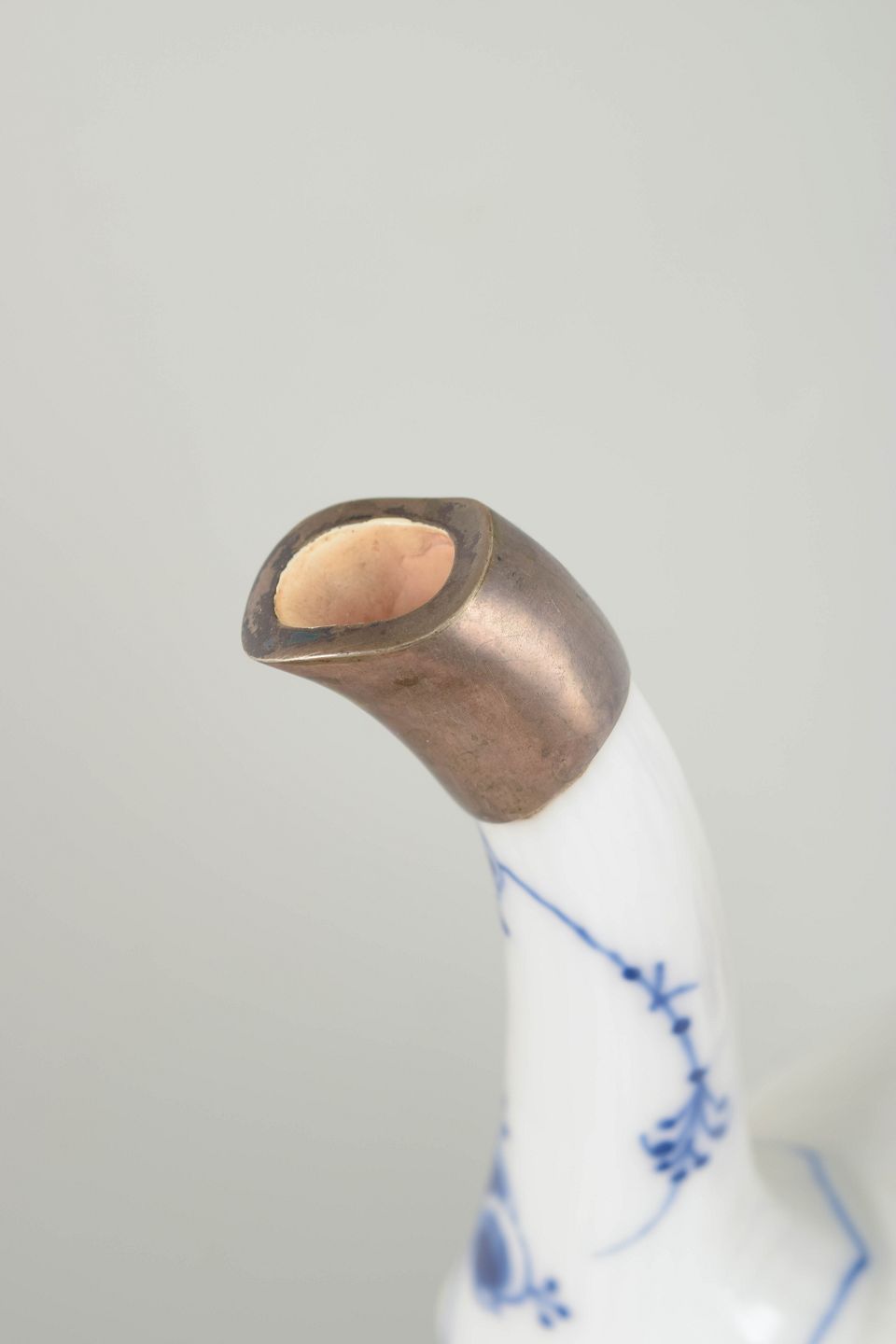 Musselmalet riflet kaffekande med sølvmontering på tuden, ca. 1920’erne.