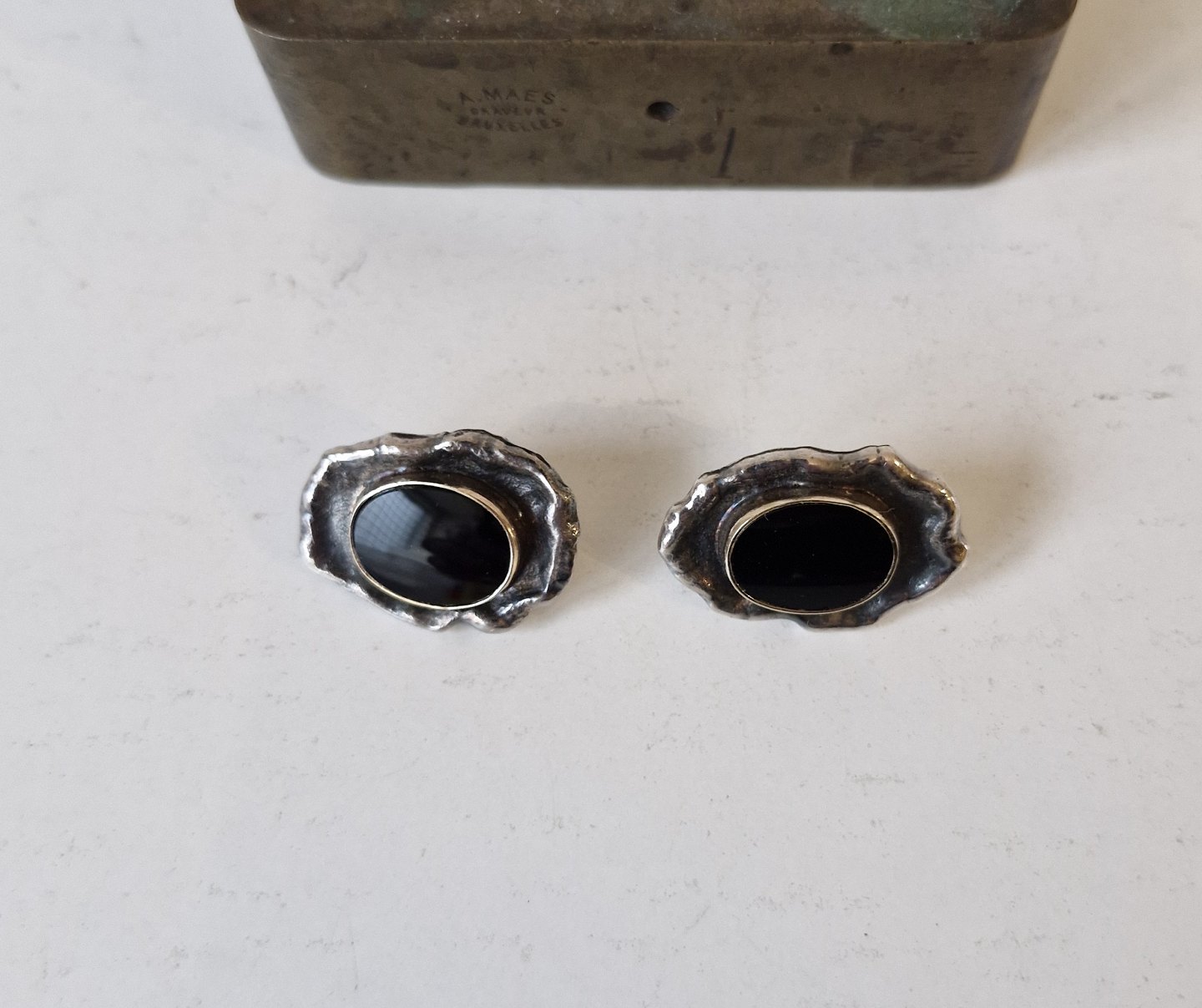 Par store ørestikker i sterlingsølv med onyx af Niels Gunni Vase