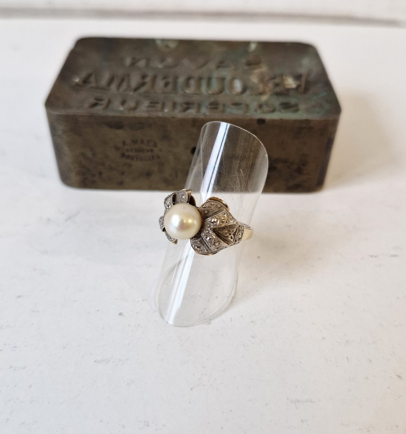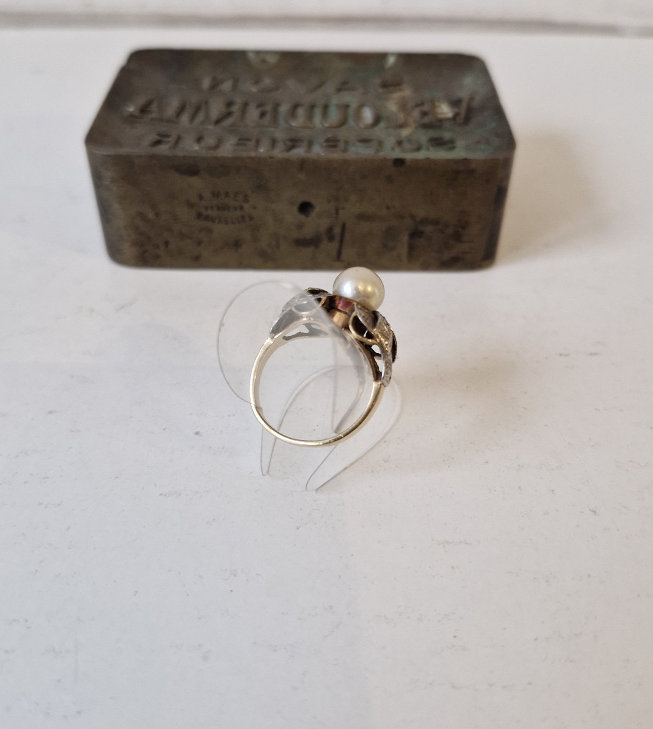Vintage ring i 18 kt rød og hvidguld med smuk akoya perle