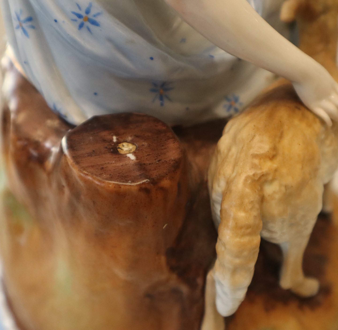 2 Antikke Europæiske figurer 29 x 18.5 cm Kvinde med hund og Kvinde med gedekid Ustemplede men i Meissen stil fra Tyskland, Bøhmen, Østrig eller Italien KPM ? I næsten hel stand