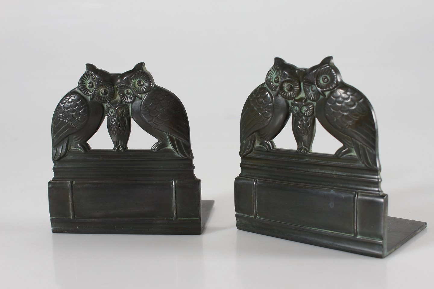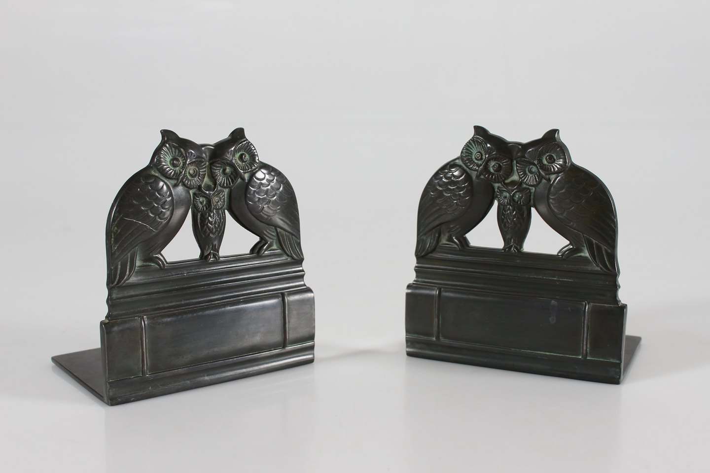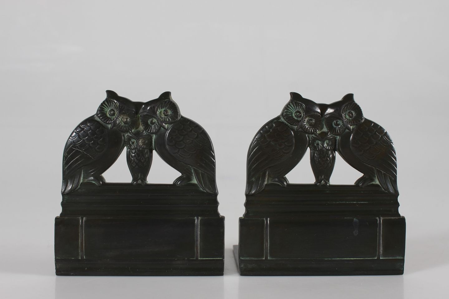 Et sæt på to bogstøtter med ugle familie