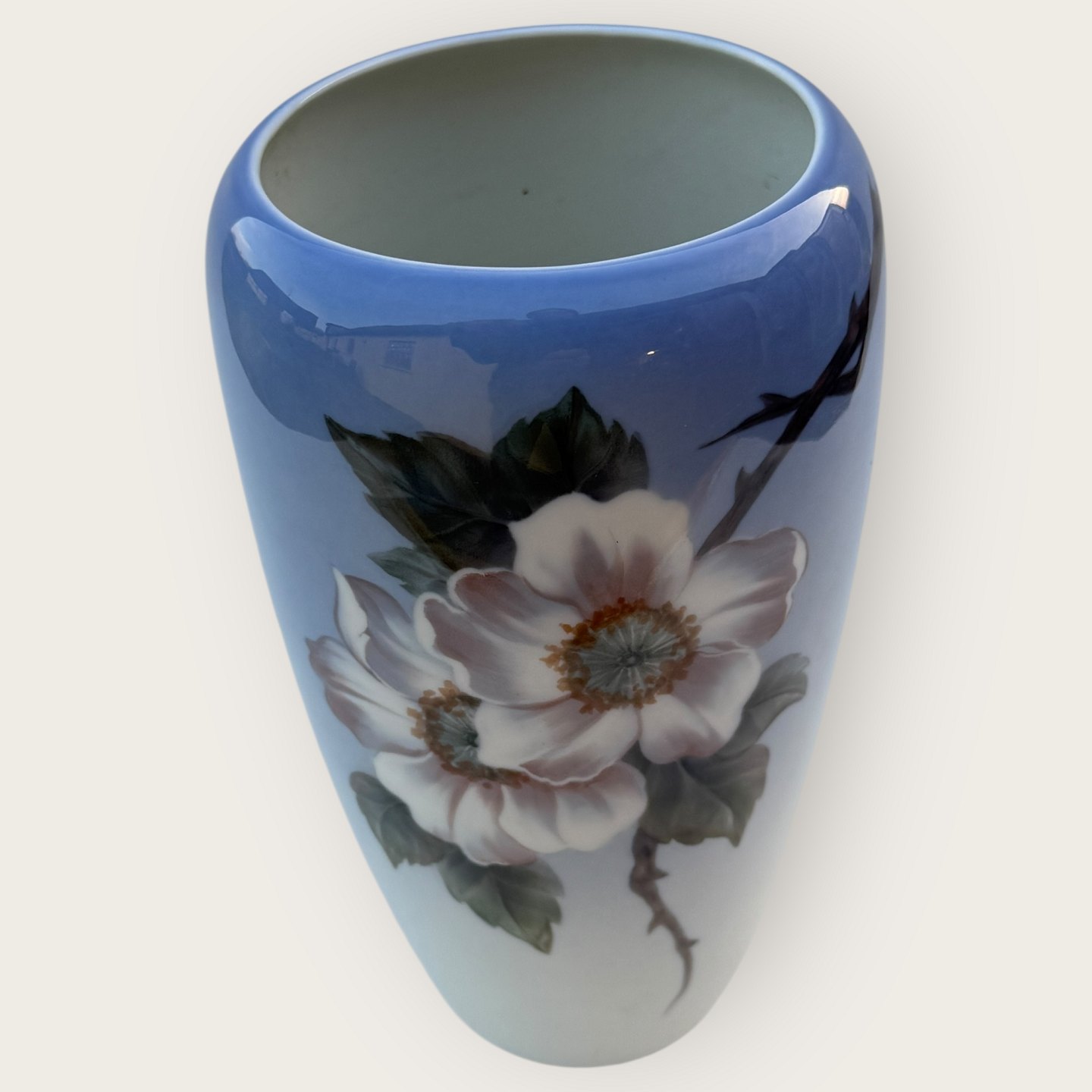 Royal Copenhagen, Vase med vildroser #2630 / 1049, 23cm høj, 12cm i diameter, 1.sortering *Perfekt stand*