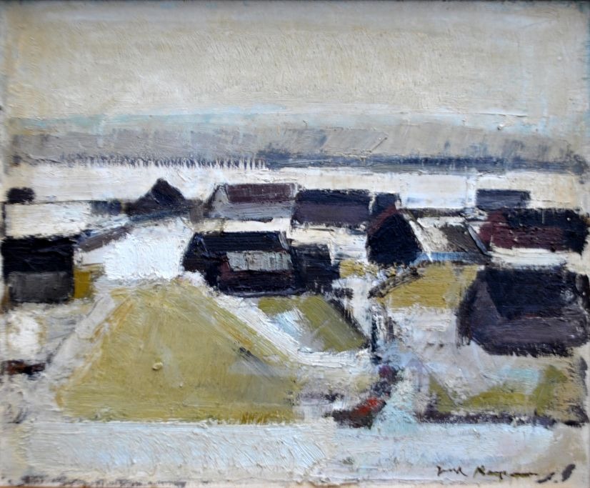 Kampmann, Jack (1914 - 1989) Danmark: Snelandskab, Færøerne. Olie på lærred. Signeret. 38 x 48 cm.
