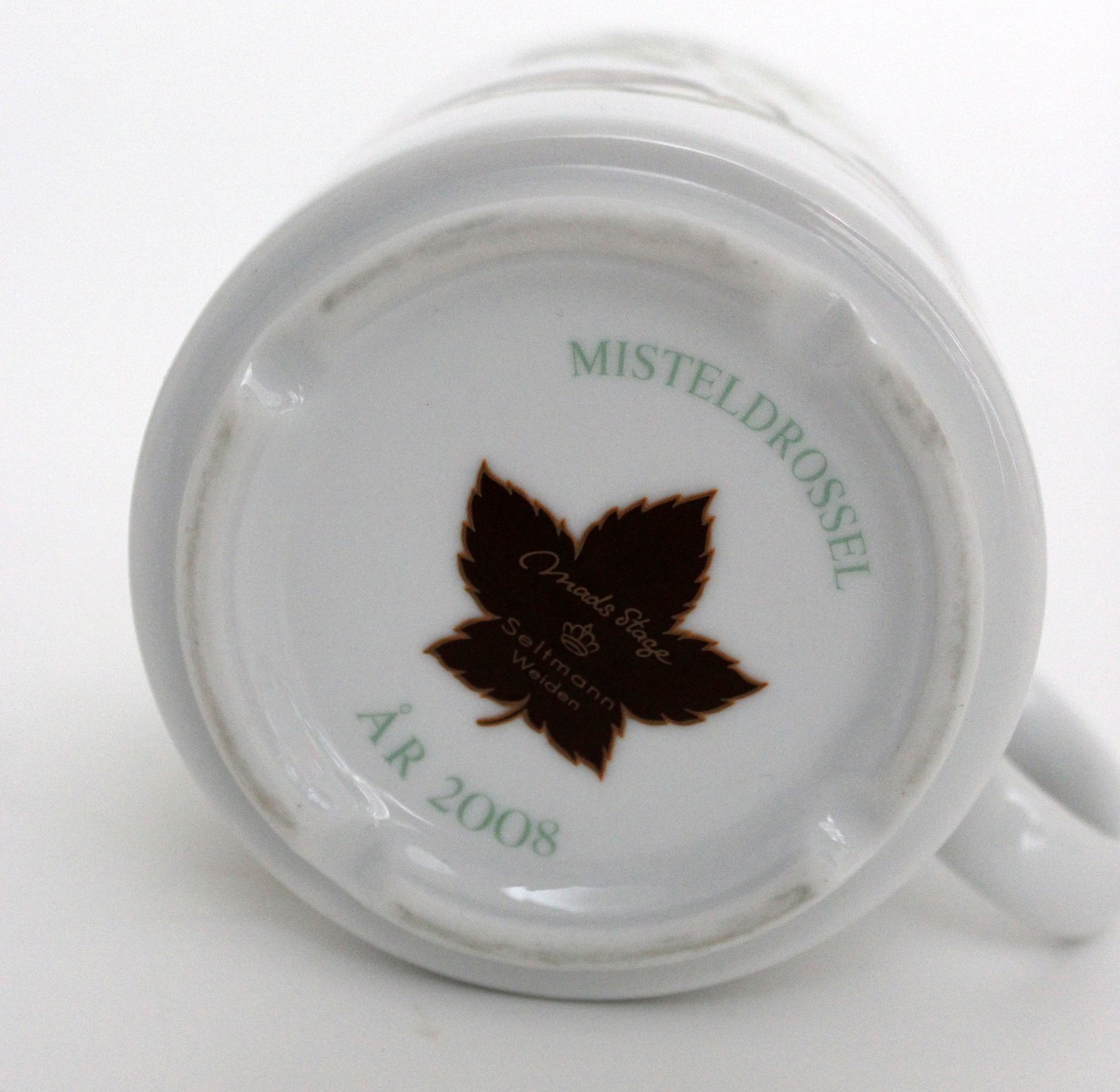 Mads Stage årskrus 2008. Misteldrossel. Højde 8,5 cm. Diameter 7,5 cm. Pris: 175 kr. stk. Lager: 1