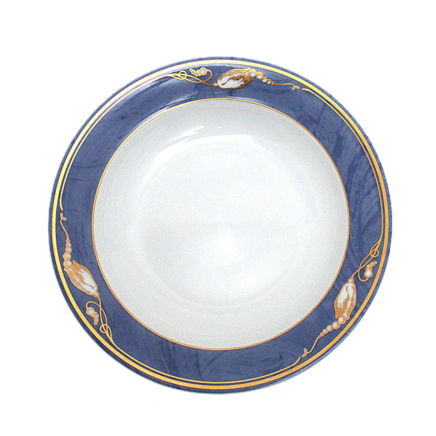 Royal Copenhagen, Blå Magnolia. Dyb tallerken. Blå marmoreret bort dekoreret med gylden blomsterknop. Designet af Flemming Eskildsen. Nr. 605. Diameter 22 cm. Højde 3,5 cm. I. sortering. Flot stand. Pris: 150 kr. stk. Lager: 4
