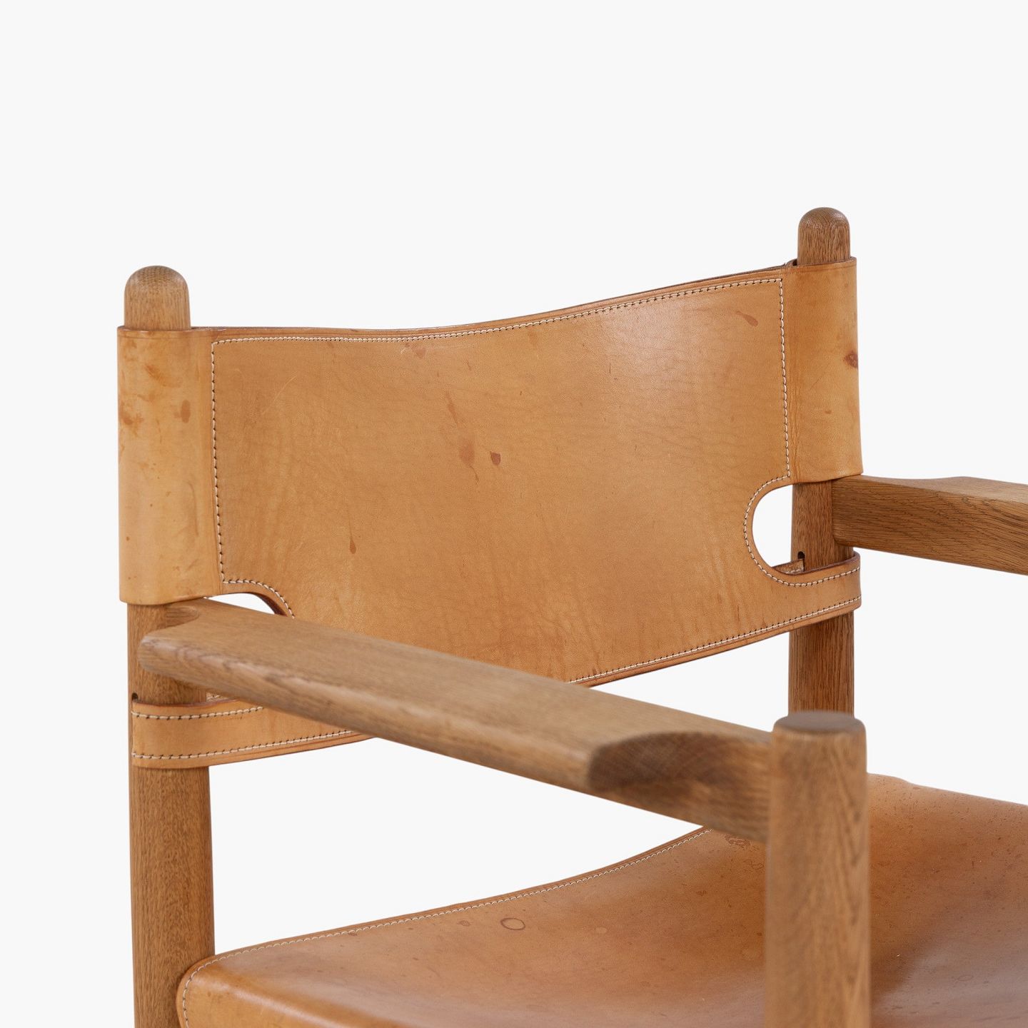 BM 3238 - 'Jagtstol' i patineret egetræ og kernelæder m. armlæn. Mærket fra producent.
