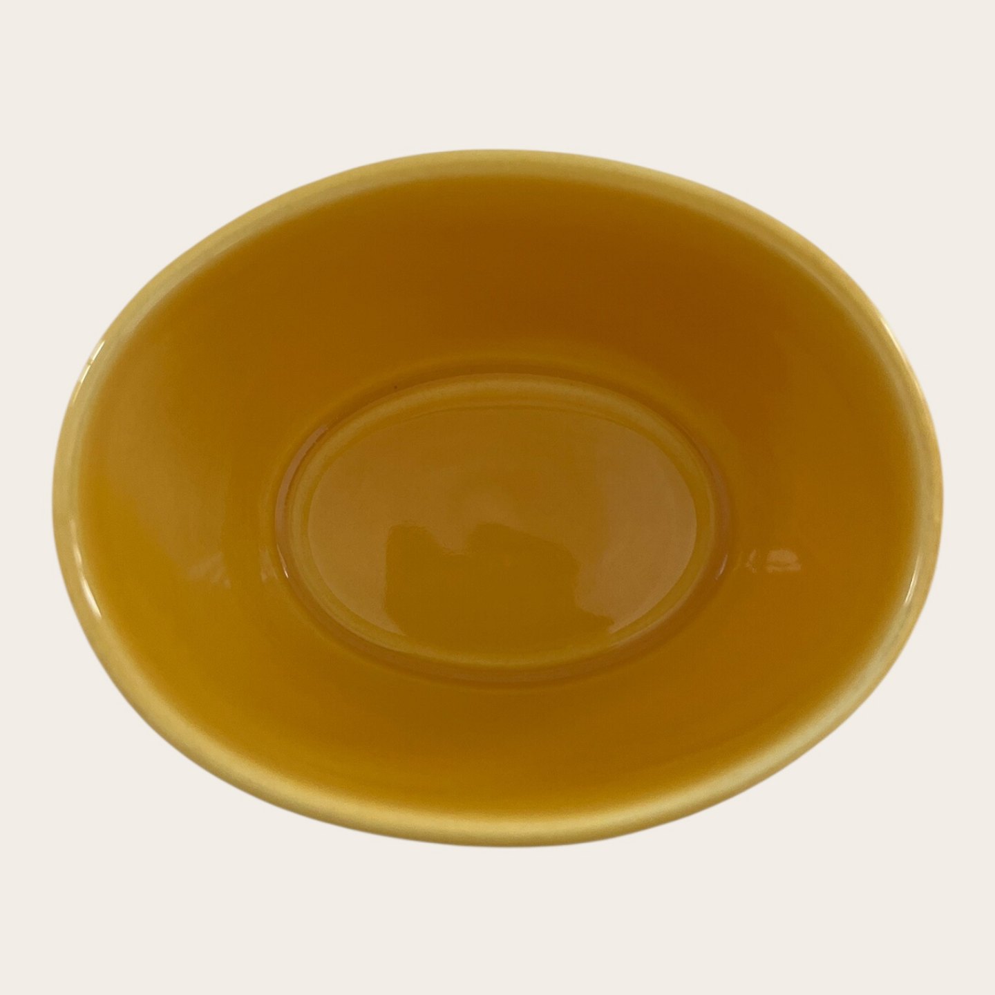 | Royal Copenhagen, Aluminia, Ursula, Oval skål, Gul #571, 1. sortering, 10,5cm lang, 8cm bred, 6cm høj, Design Ursula Munch Petersen *Pæn stand*