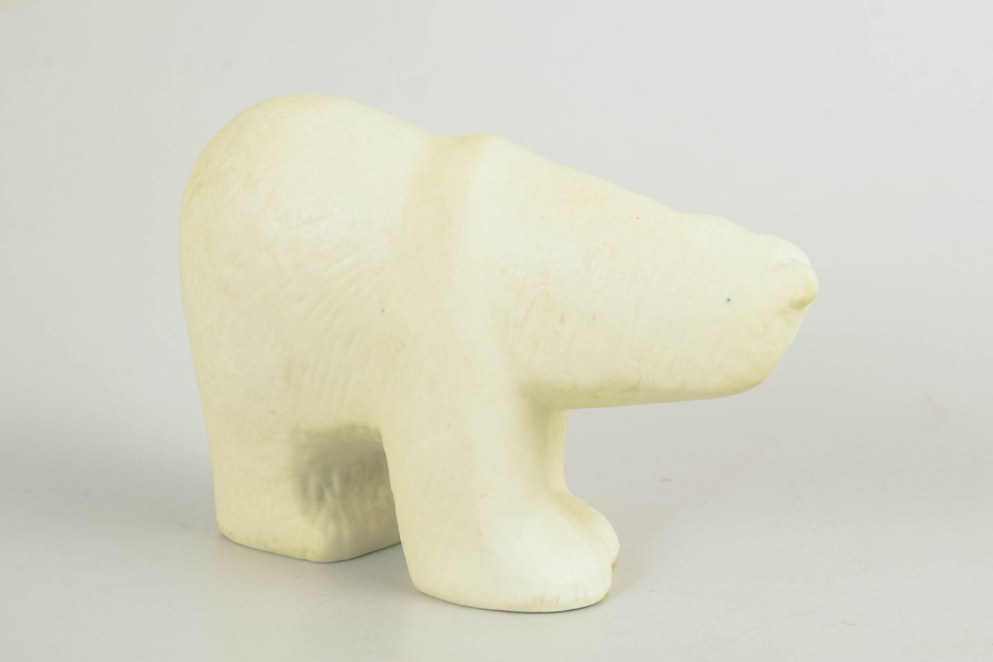 Dekorativ dyrefigur i glaseret stentøj, udført som isbjørn med bløde, afrundede former og diskret bemaling i ansigtet. Figuren er udført i 1970’erne og har et enkelt, karakteristisk udtryk, hvor form og overflade fremhæver Lisa Larsons stil. Modellen er fra Skansen-serien.