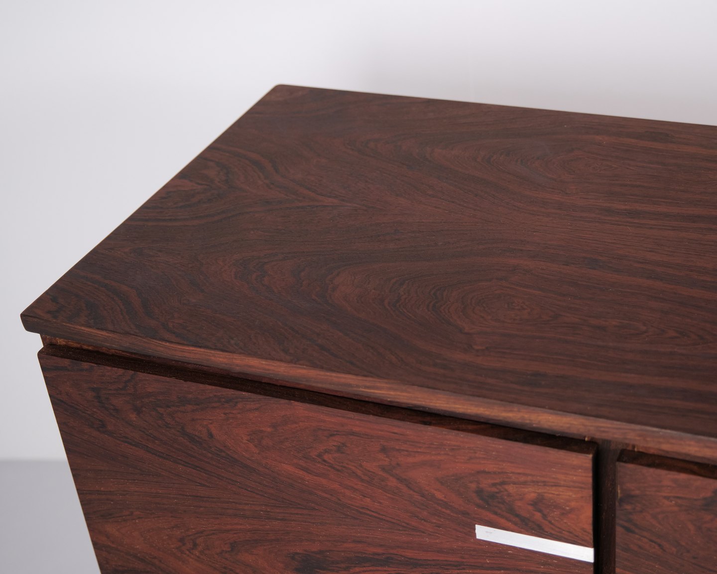 Skænk i palisander designet af Kai Kristiansen for Feldballes Møbelfabrik. Dansk design fra 1960’erne med alu greb og fødder.