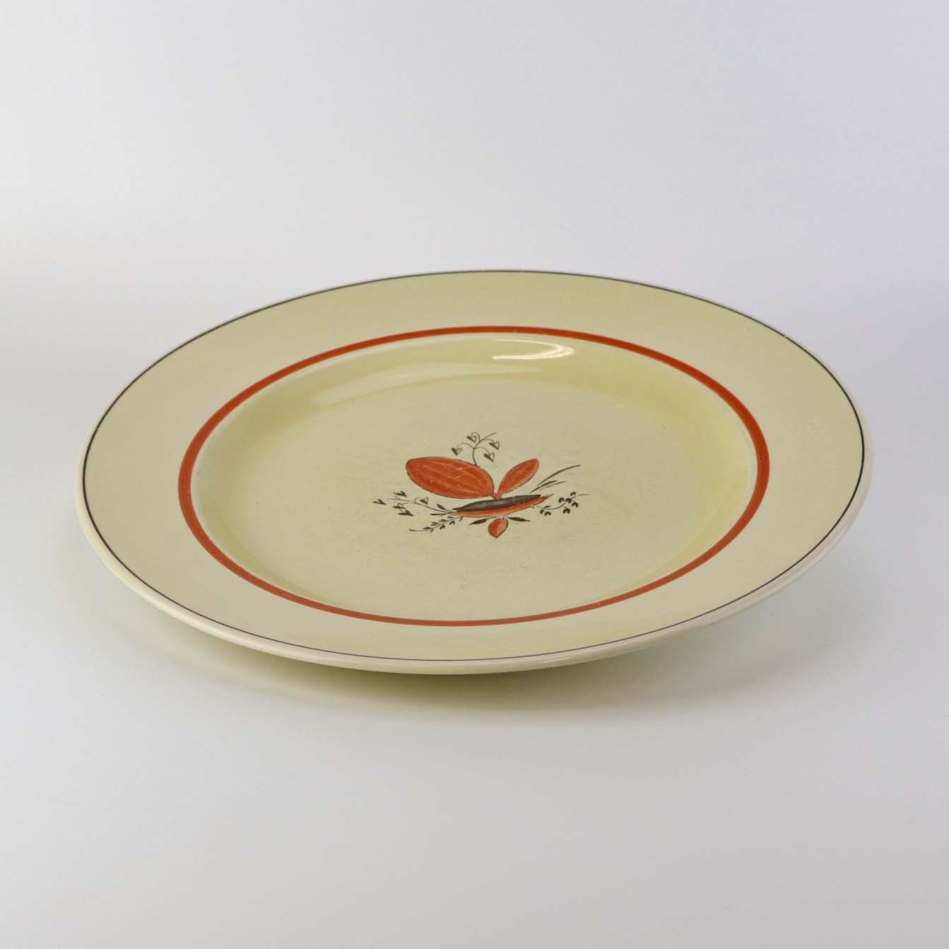 Flad middagstallerken i fajance fra stellet Silkeborg fremstillet i perioden 1937-1939