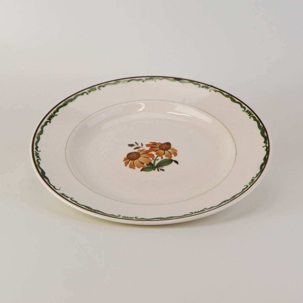 Desserttallerken i fajance fra stellet Solbrud fremstillet i perioden 1937-1967