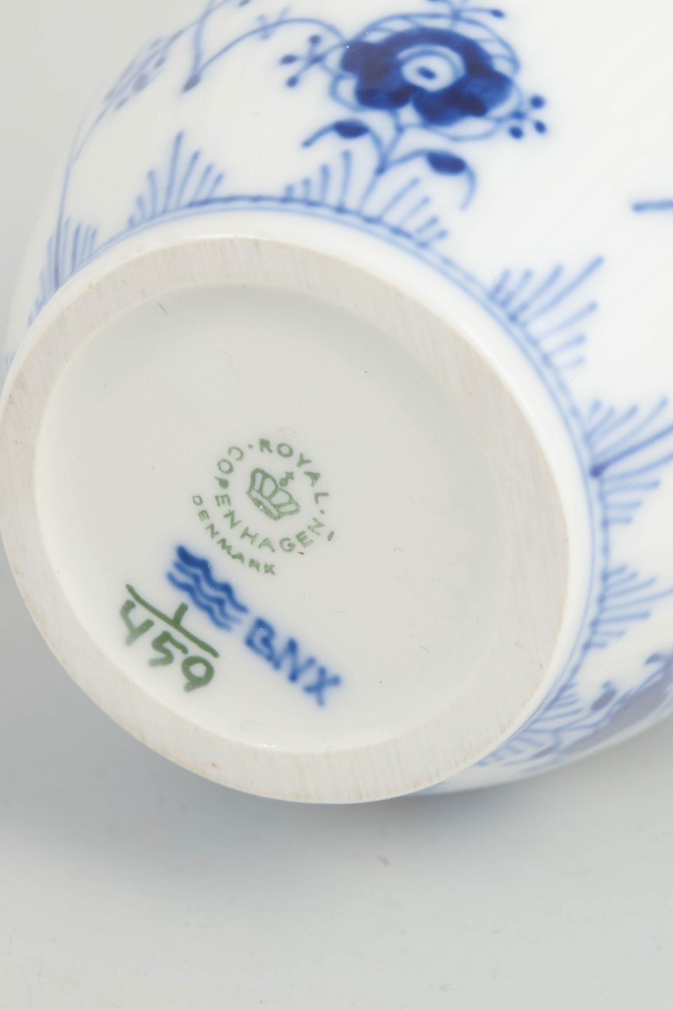 Musselmalet riflet er Royal Copenhagens ældste og mest ikoniske stel, kendetegnet ved den riflede form og det håndmalede blå underglasurmaleri. Hvert stykke dekoreres i hånden efter traditionelle teknikker, hvilket giver små variationer og understreger stellets håndværksmæssige kvalitet og tidløse udtryk.
