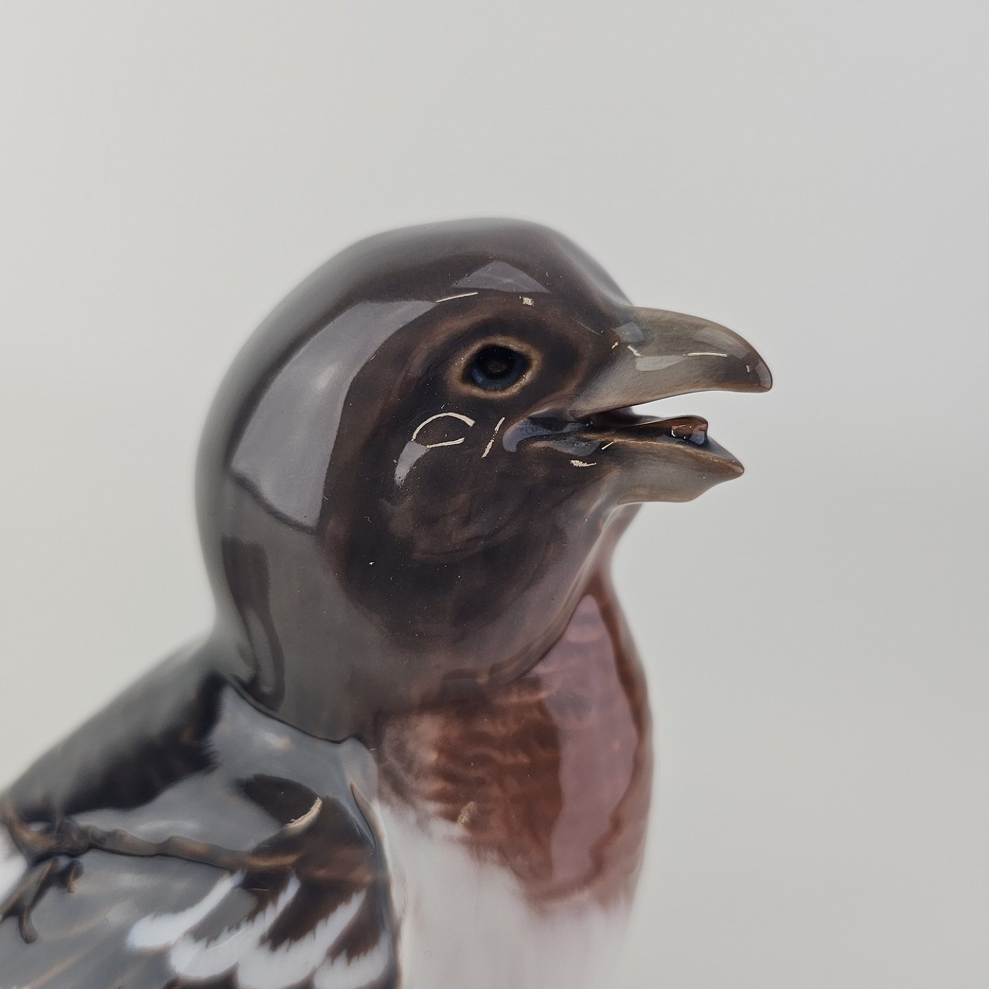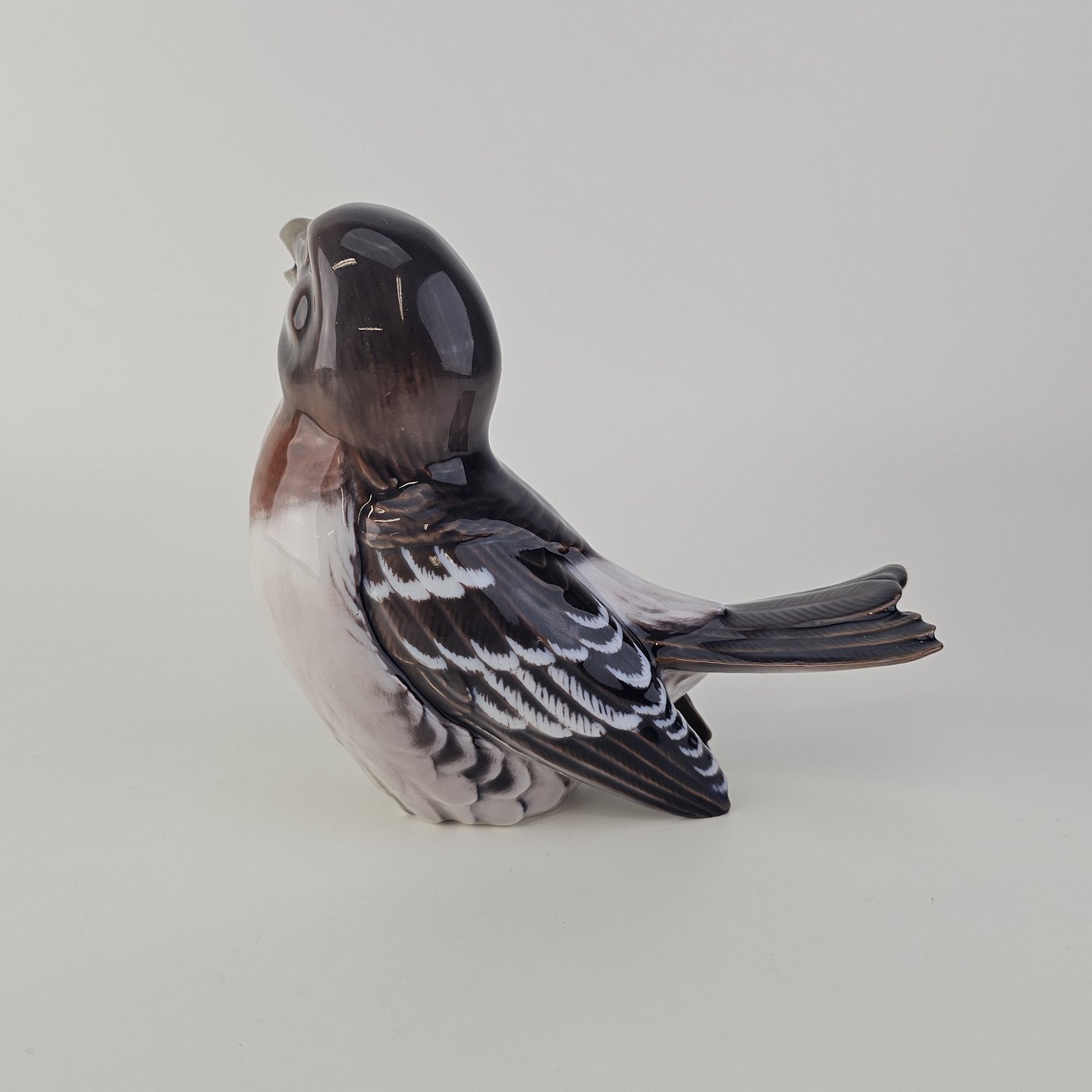 Figur i porcelæn med motiv af en fugl