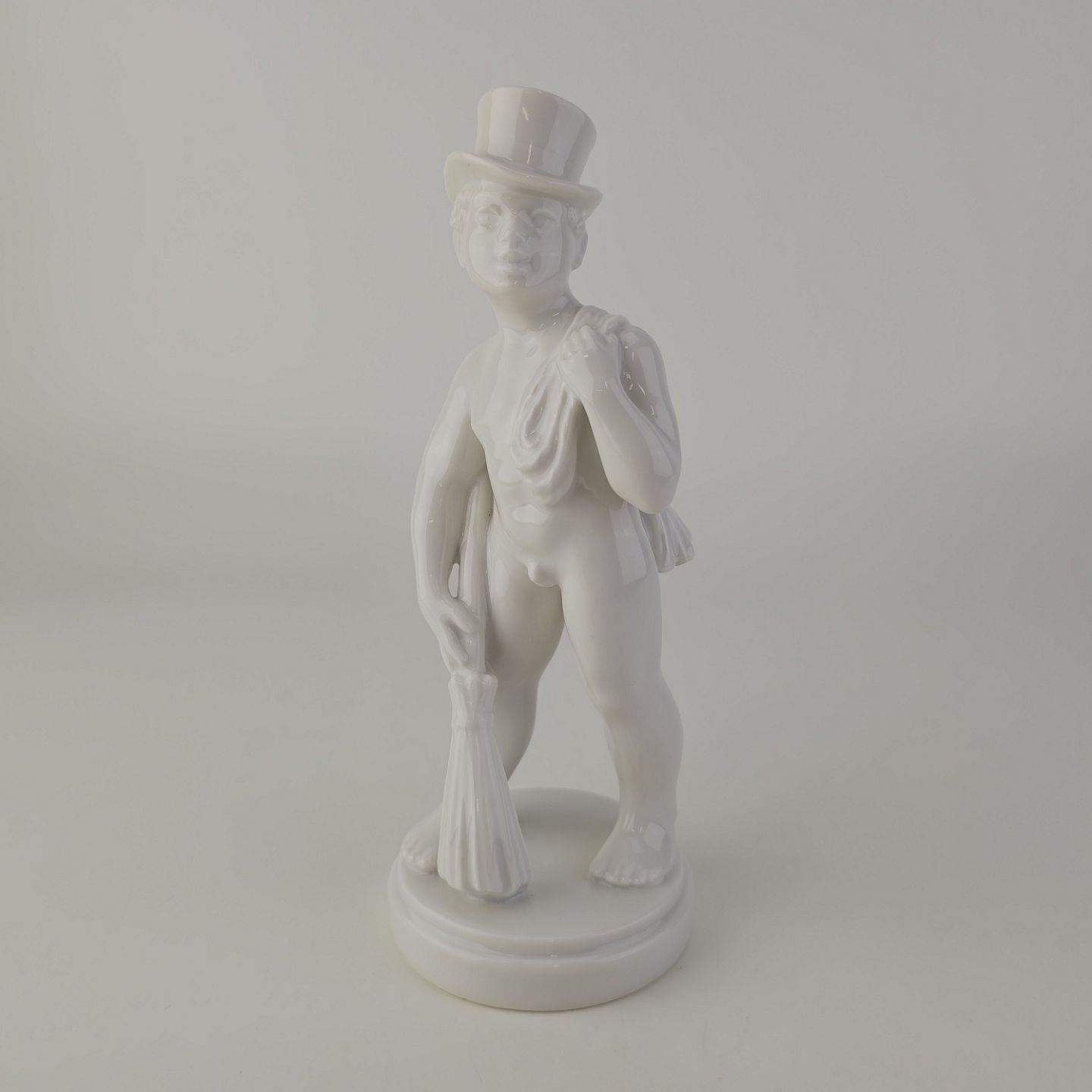 Figur i hvidt porcelæn med motiv af en skorstensfejer