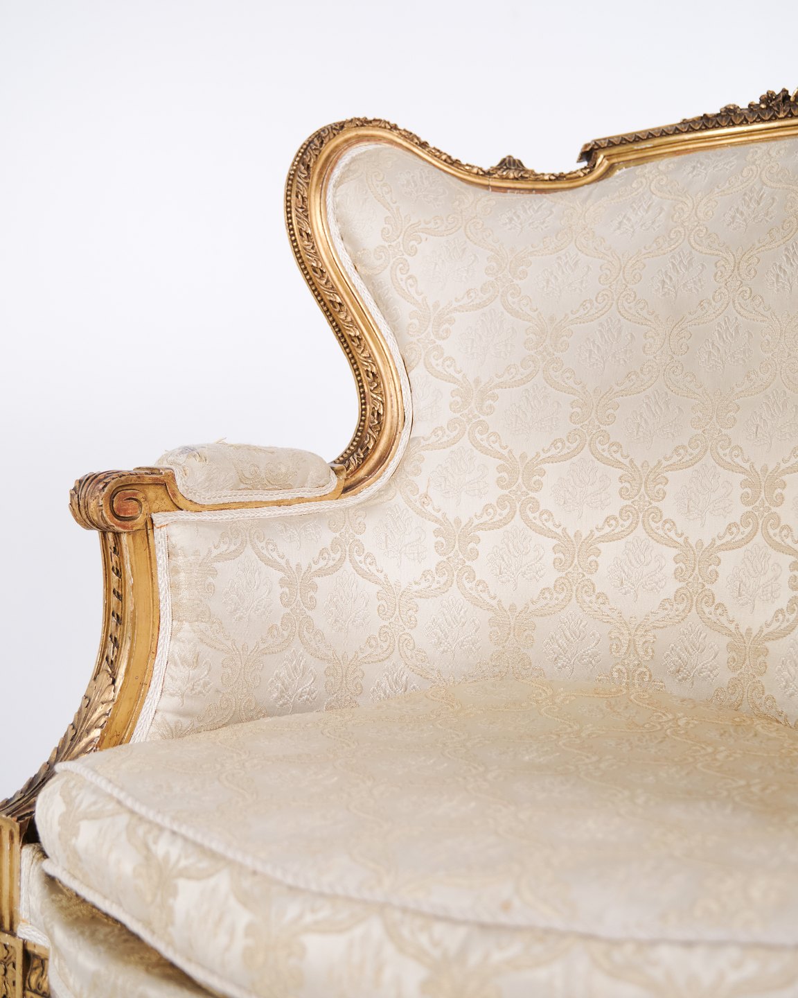 — Materiale: Forgyldt træ og lyst stof