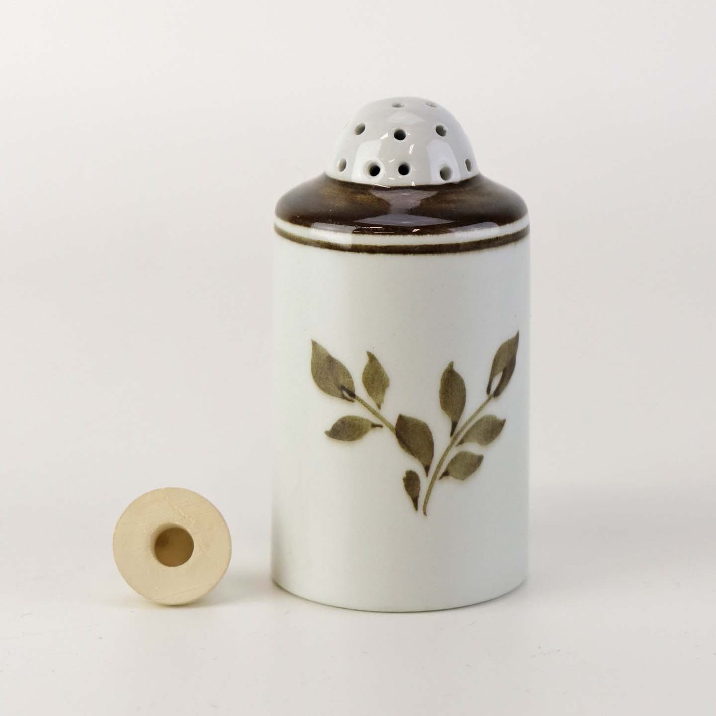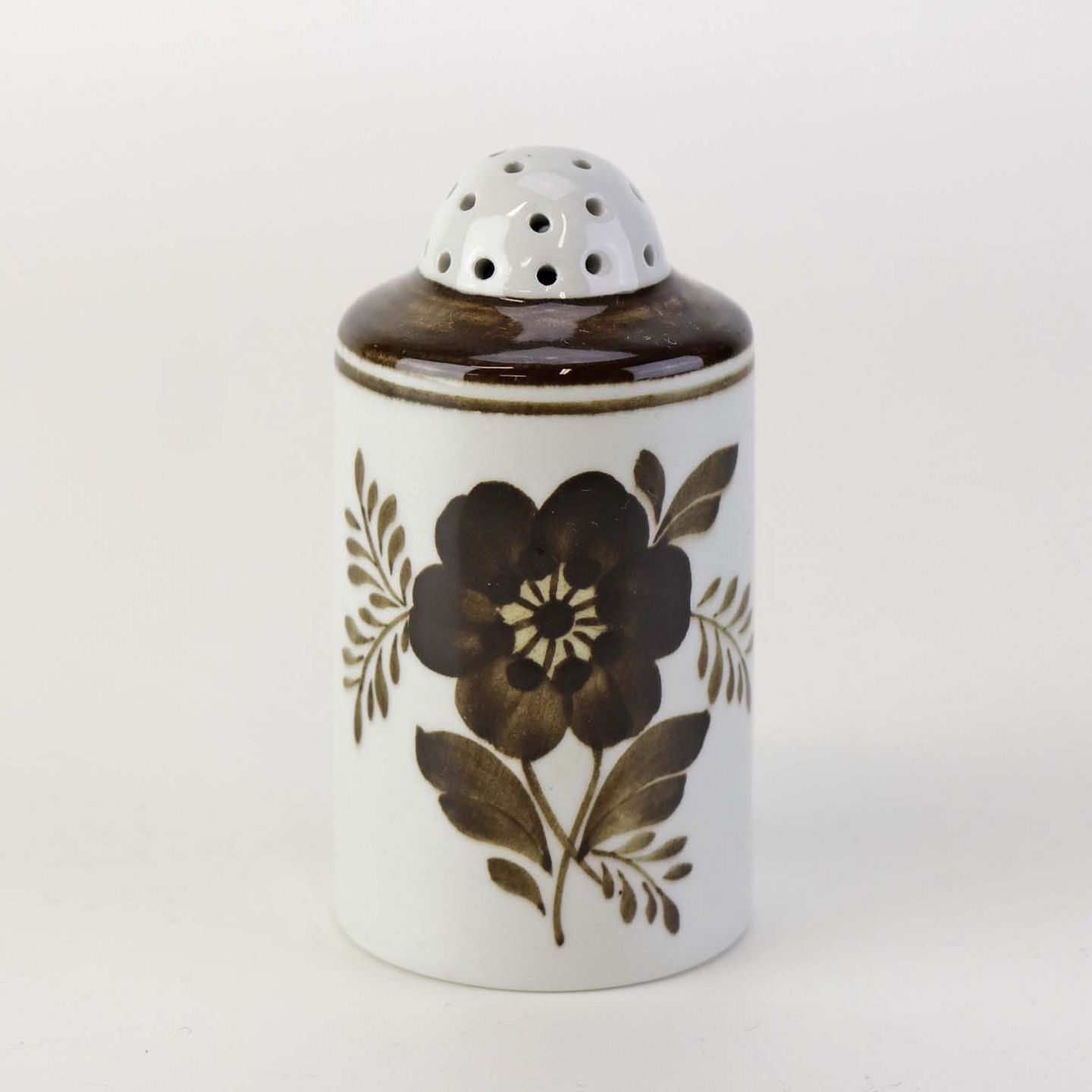 Peberbøsse i fajance fra stellet Brun Tranquebar fra år 1919. Nr 45/1009