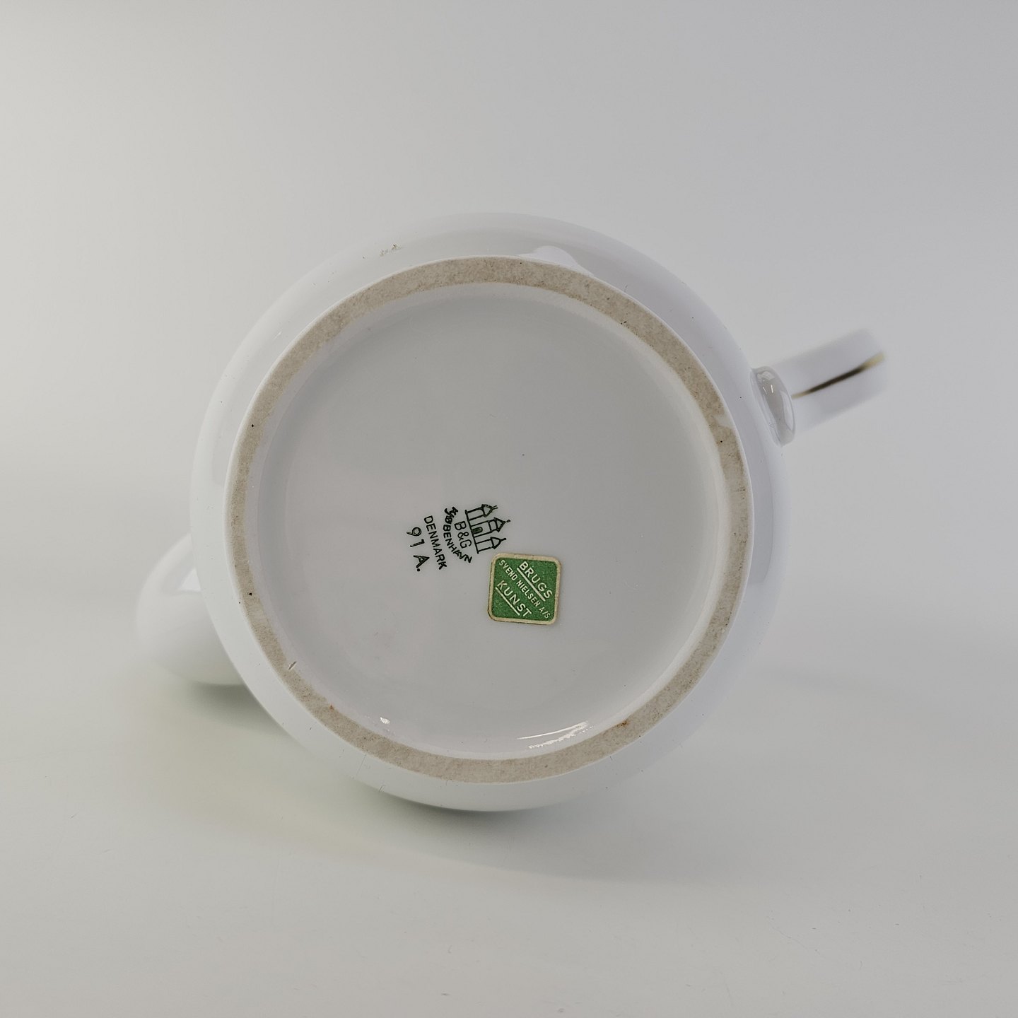 Tiber er stel i glat hvidt porcelæn med grå bort og guldkant