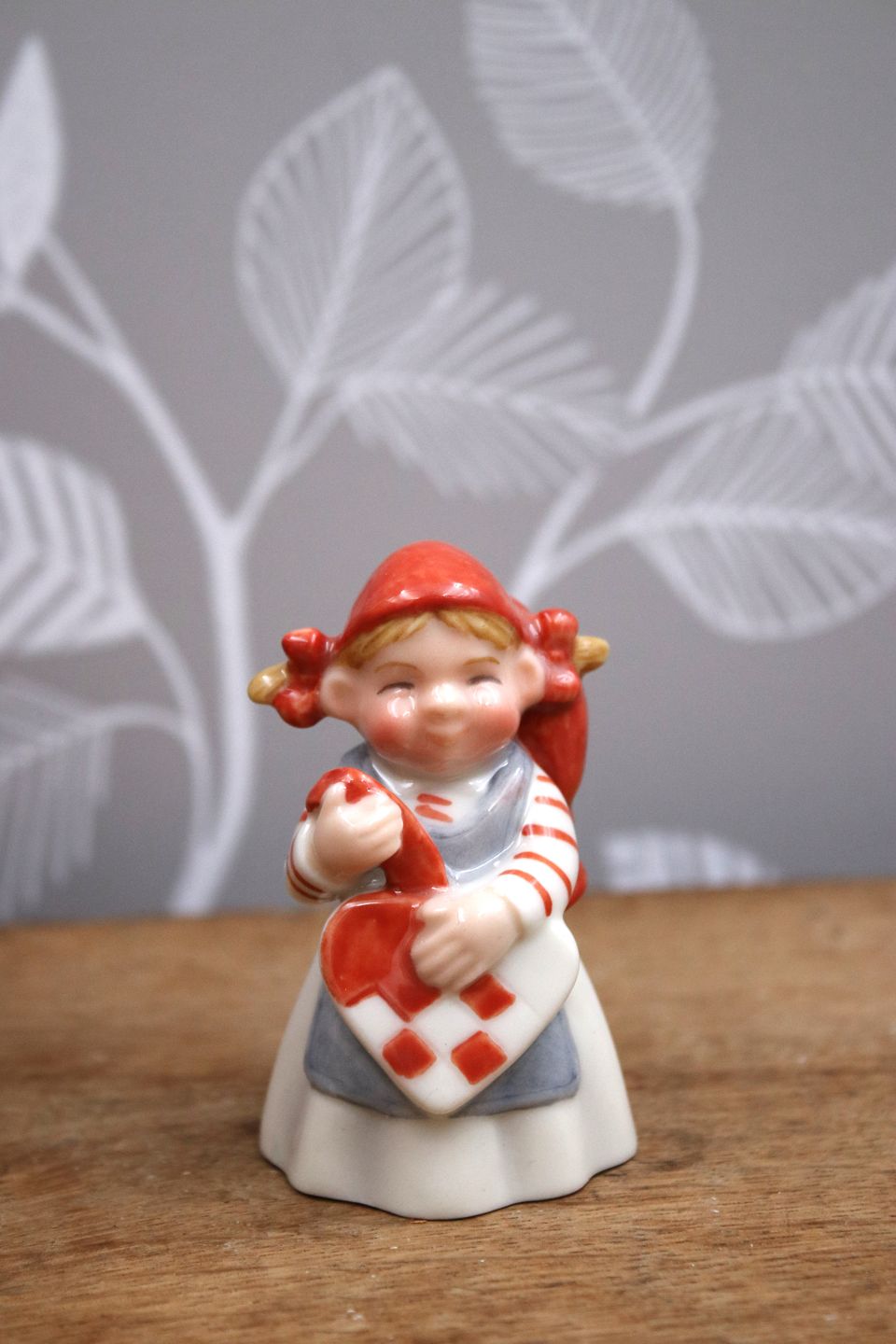 Pige med julehjerte. Højde: 6,5cm.