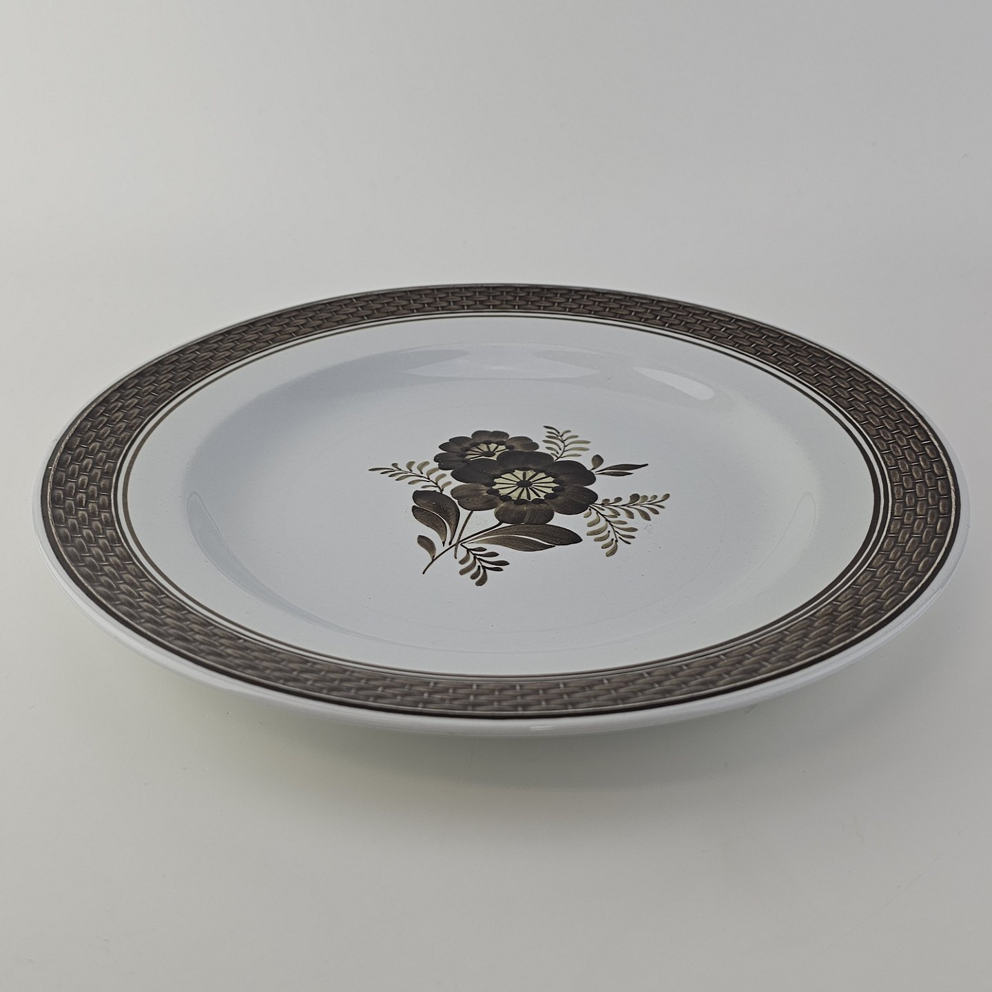 Middagstallerken i fajance fra stellet Brun Tranquebar fra år 1919