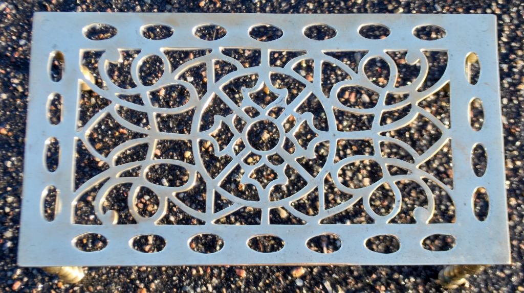 Varmeplade, England, 19. årh. Messing. H: 16 cm. B: 34,5 cm. D: 19 cm.