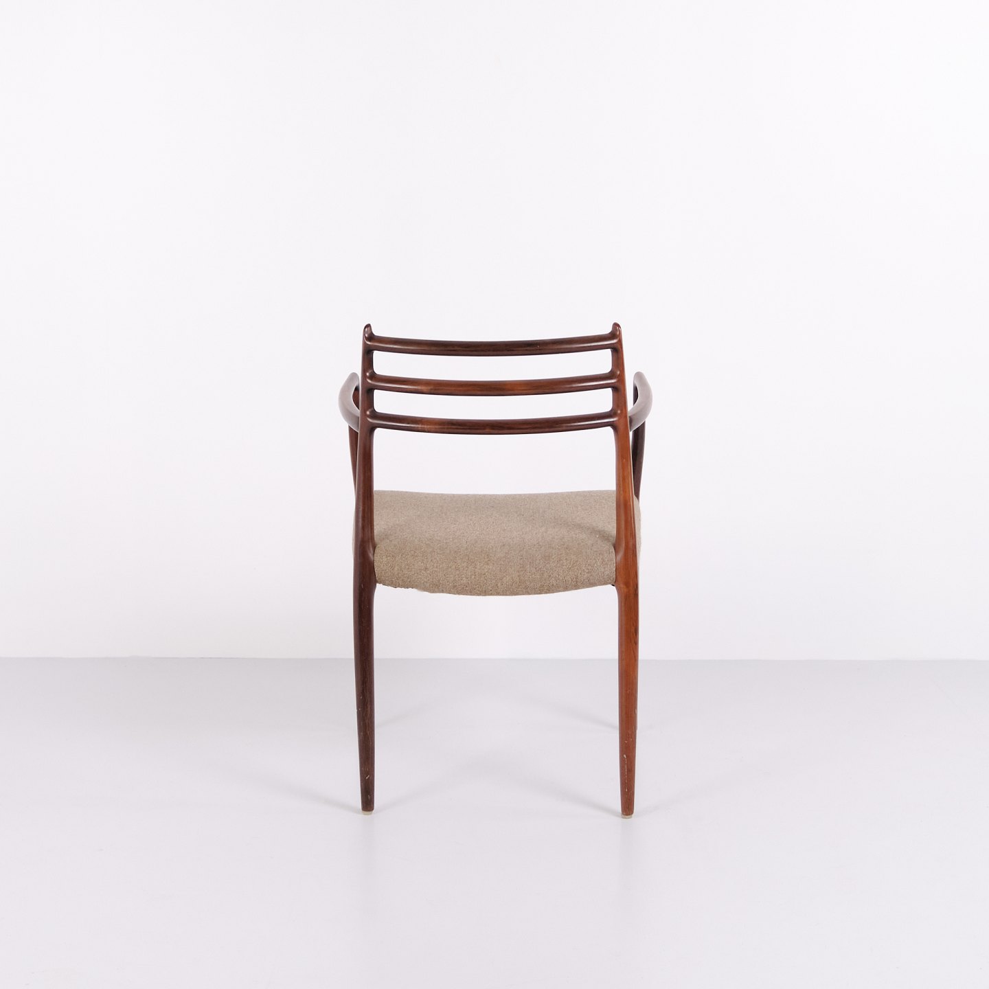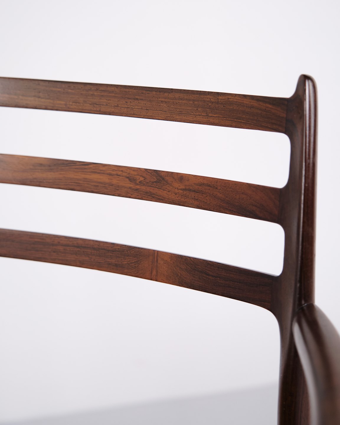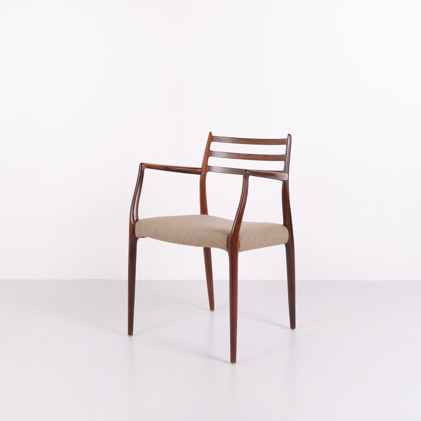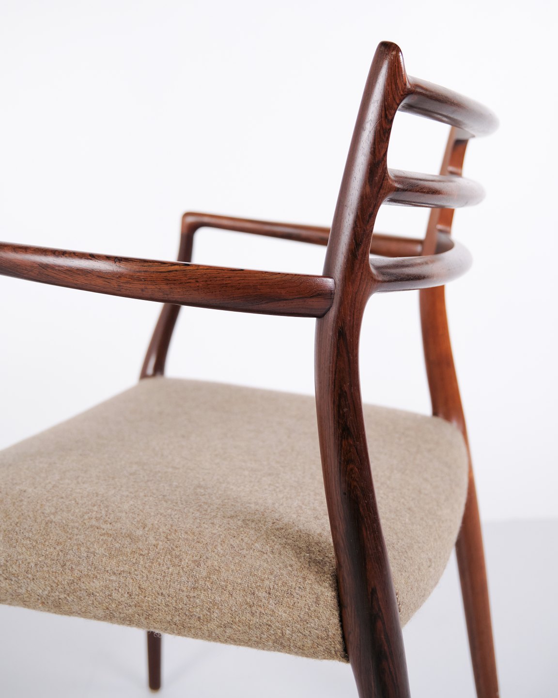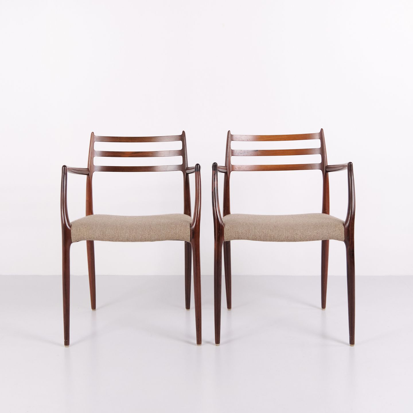 Sæt armstole, model 62, designet af Niels Otto Møller i 1962. Stolene er udført i palisander og er kendt for deres slanke konstruktion, præcise snedkerdetaljer og ergonomiske opbygning. Model 62 regnes blandt Niels Otto Møllers mest anerkendte stole og er et markant eksempel på dansk møbeldesign fra begyndelsen af 1960’erne.