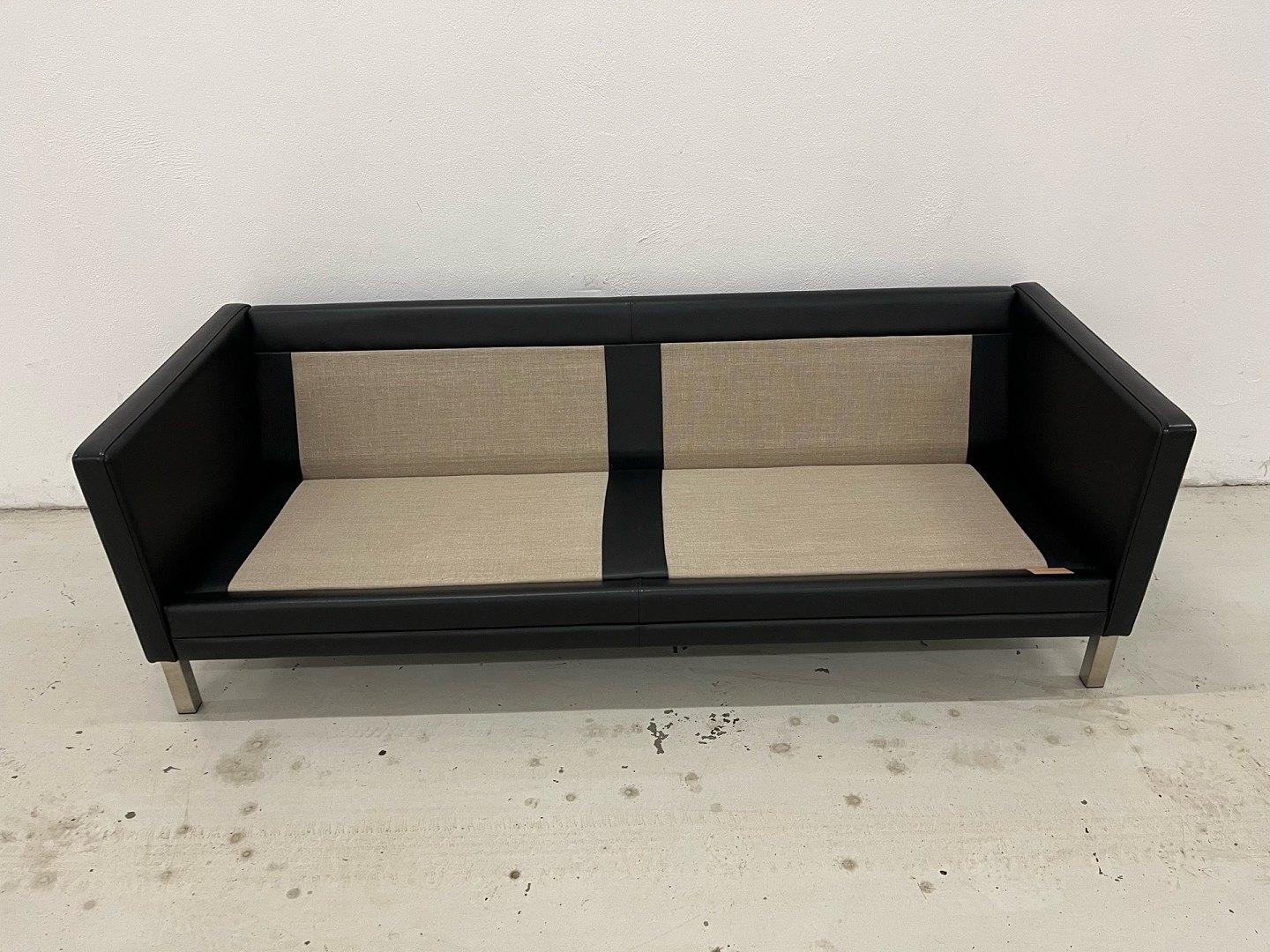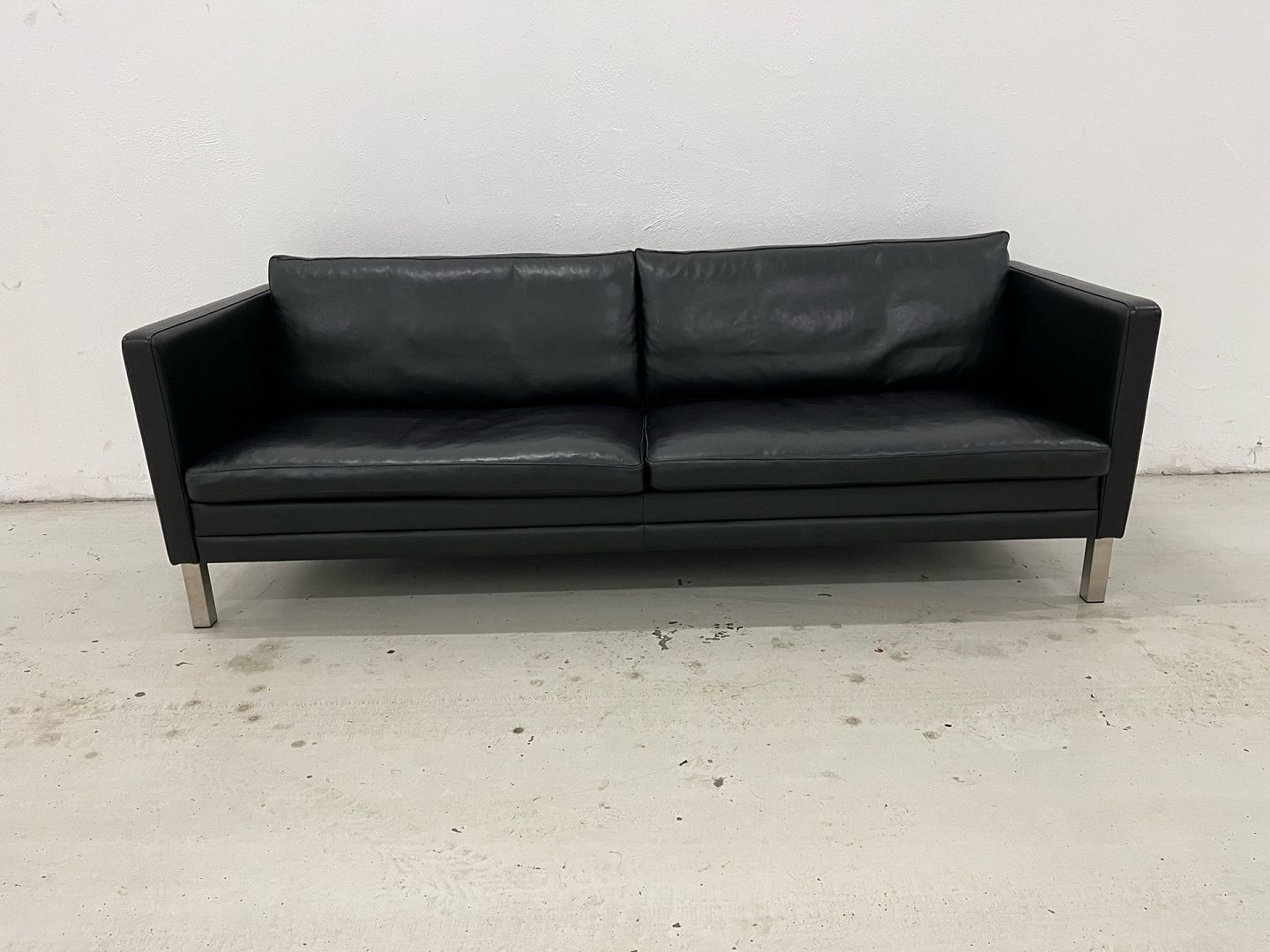Eksklusiv 3-personers sofa, model MH276, designet af Mogens Hansen. Sofaen er udført i Loke læder, gruppe 2, i farven Black med elegante ben i børstet stål.