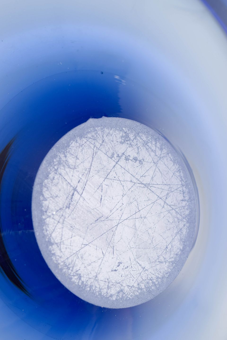 Organisk formet skål i mundblæst glas med bløde, flydende linjer og let opadbøjet kant. Formen er karakteristisk for Per Lütkens skulpturelle tilgang til glas i 1960’erne. Signeret i bunden.