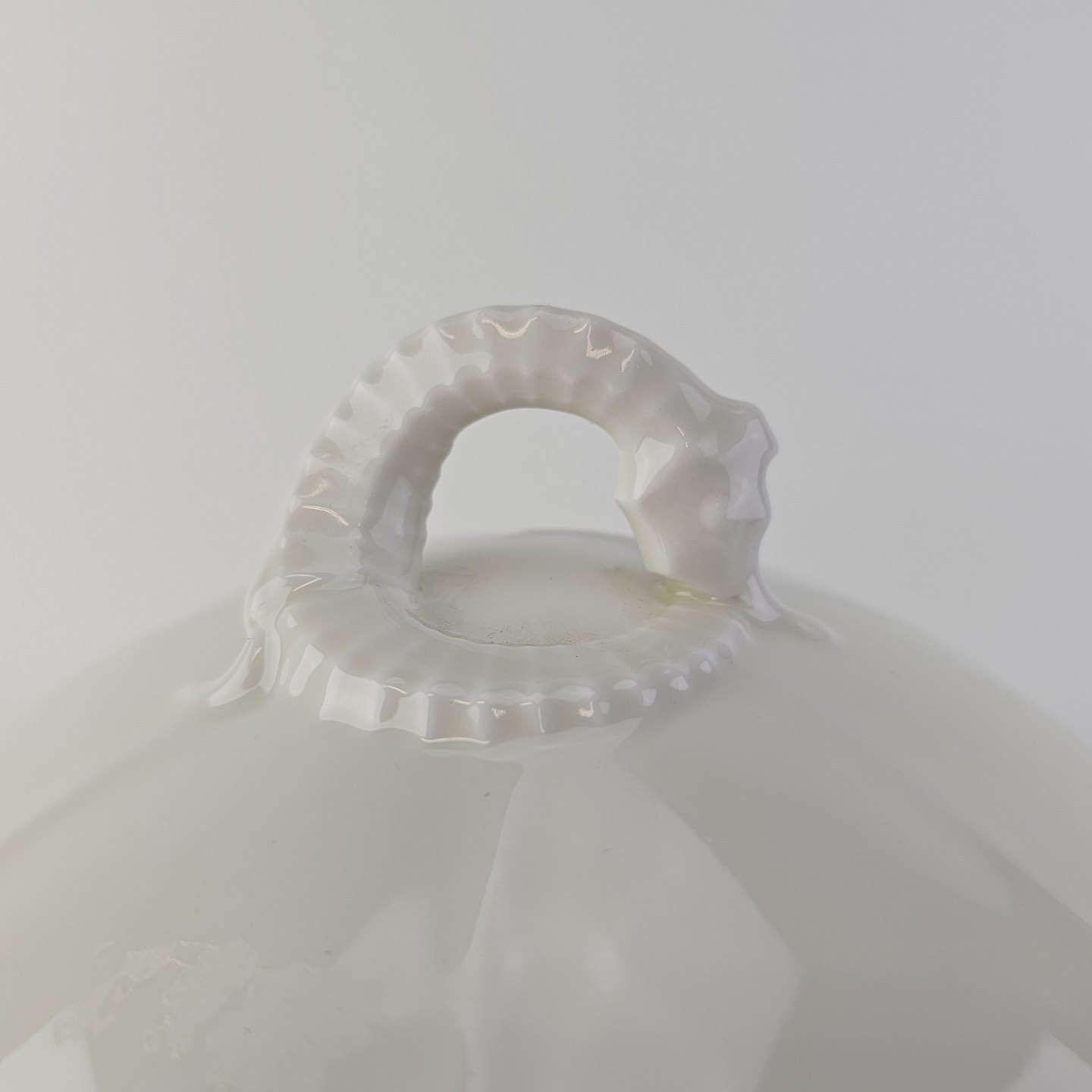Elegance er cremefarvet glaseret porcelæn med skæl mønster