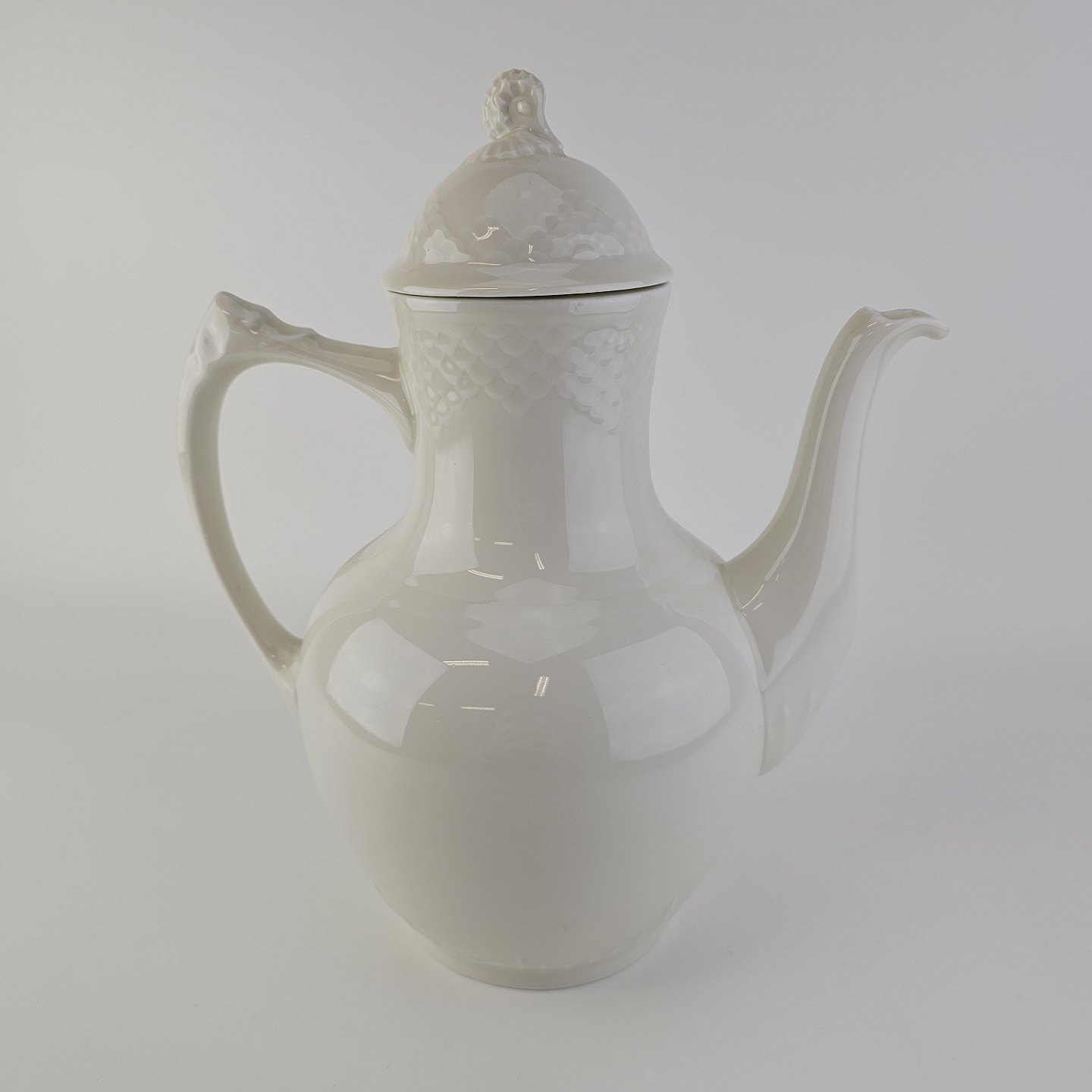 Elegance er cremefarvet glaseret porcelæn med skæl mønster