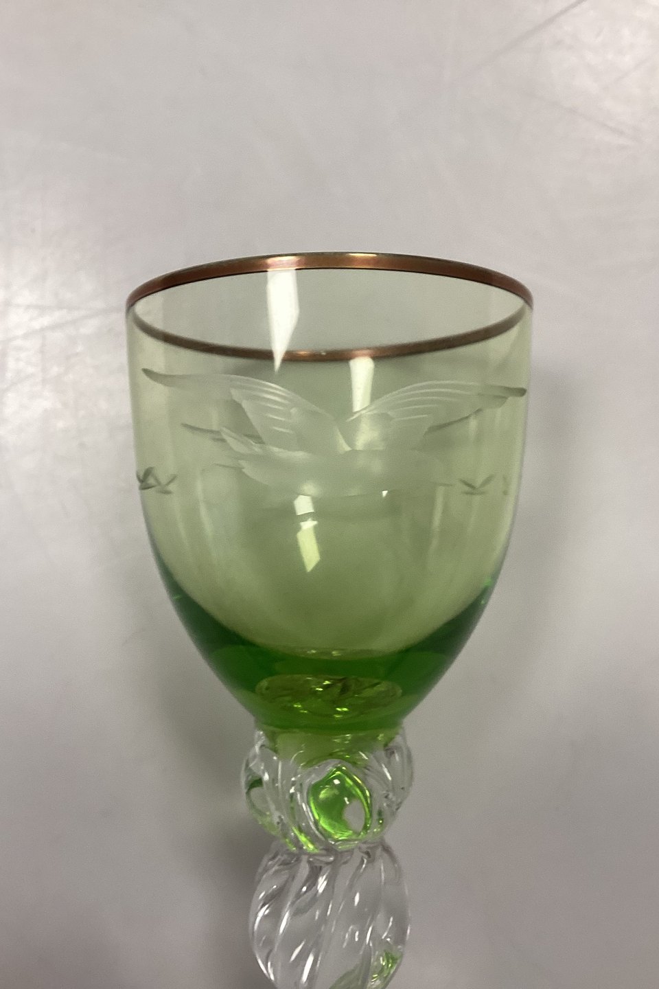 Lyngby Glasværk Måge Grønt Hvidvinsglas. Måler 12,6 cm / 4,96 in.