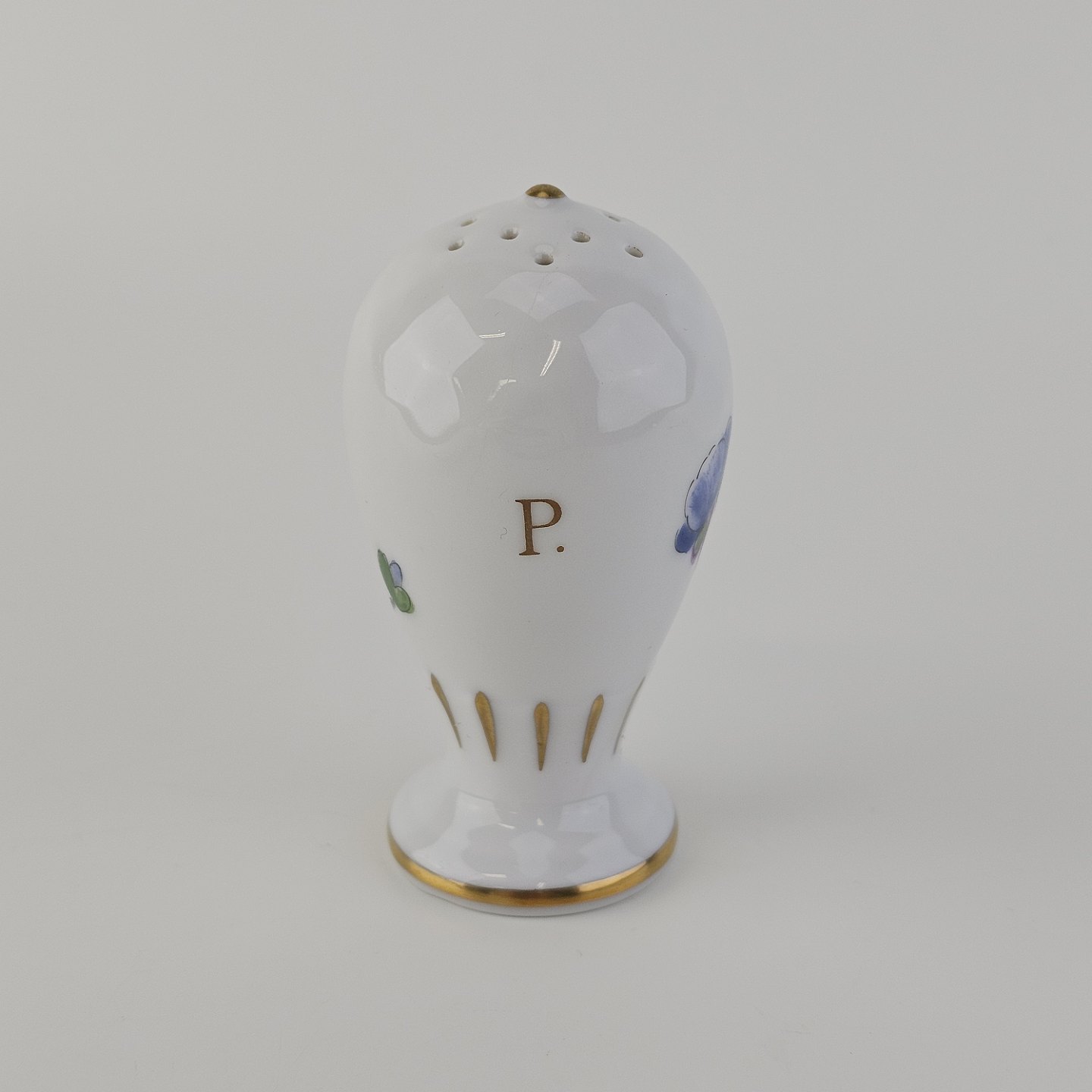 Antonius er af hvidt porcelæn med skælform dekoreret med håndmalede blå anemoner og guldkant. Også kendt under navnet Blå Anemone.