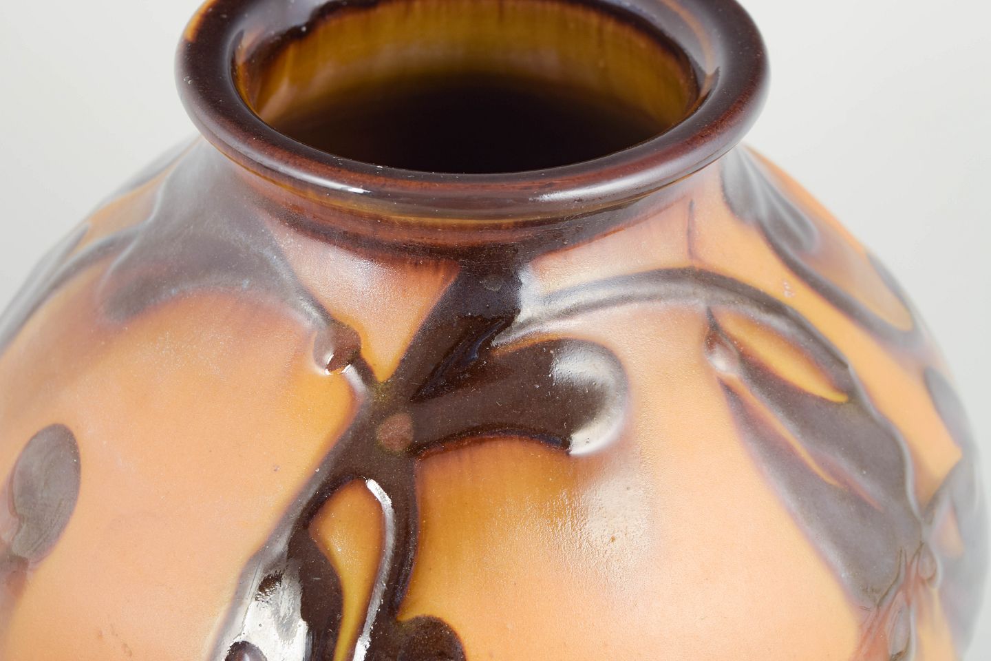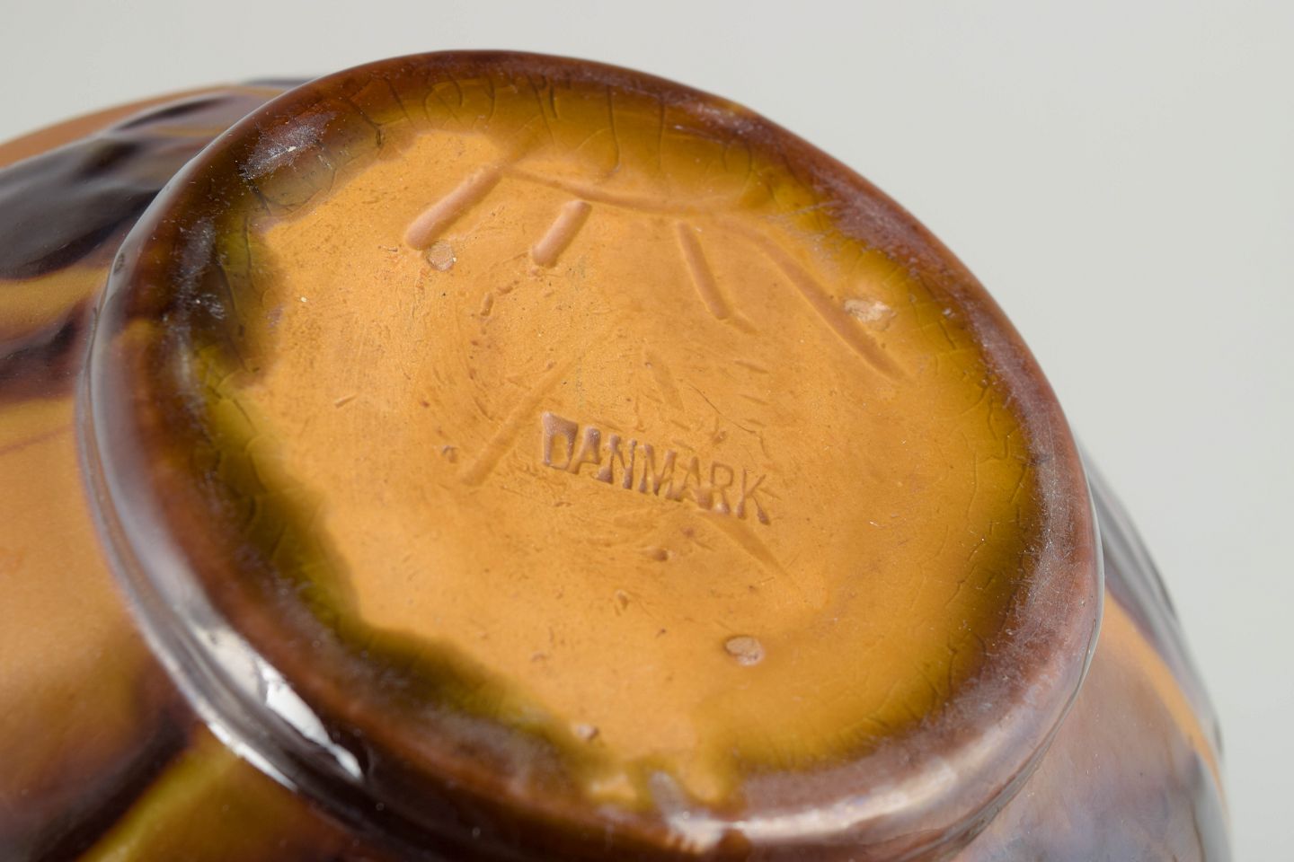 Kähler Keramik in Næstved was one of Denmark’s most innovative ceramic workshops in the first half of the 20th century. During the 1930s, the workshop explored experimental glaze methods, including the so-called cow horn technique, where liquid glazes were applied and shaped using horn or similar tools. This process created dynamic, highly individual surfaces with strong visual depth and variation. Such pieces reflect the era’s emphasis on artistic craftsmanship and are today regarded as some of the most sought-after examples of Kähler’s ceramic production.